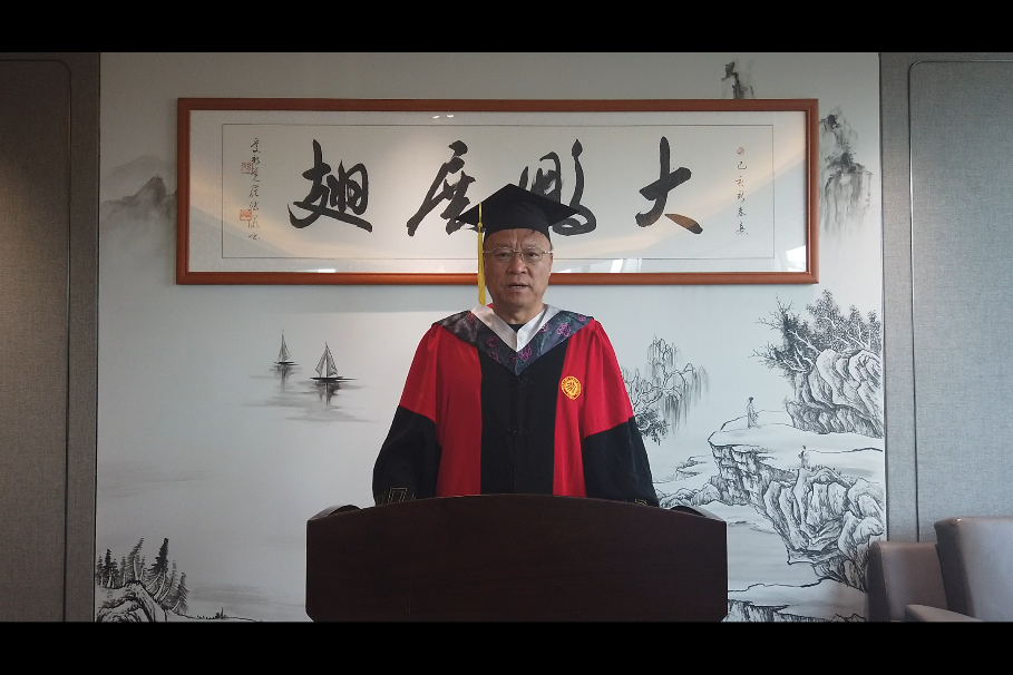 院长高文教授发表讲话。他首先对毕业生圆满完成学业、顺利毕业表示祝贺,对家长及社会各界友人配合学院育人工作表示感谢,也对信科老师为本届毕业生成长进步付出的努力表达敬意。他将这个特殊的毕业典礼和毕业季看作是本届毕业生们在特殊历史时期的一门实践课,称赞同学们是美好家园的守护者、探索路上的攻坚者、课题研究的先行者,为防疫抗疫贡献了信科智慧、信科力量。在送别的时刻,高文院长对毕业生提出了三点寄语:一是希望同学们坚持终身学习,保持好奇心,与时代同步前进;二是要勇于担当,荣辱不惊,一步一个脚印踏踏实实做事;三是要目标远大,砥砺奋进,永远拥有积极励志的初心,拥有乐观向上的人生姿态。最后,高文院长指出:理想决定成就的高度,胸怀决定成就的广度,人格决定成就的深度。他勉励毕业生们带着北大赋予的精神和品格,带着信科教给的智慧和能力,在更高的层面、更宽广的天地取得更大的进步。