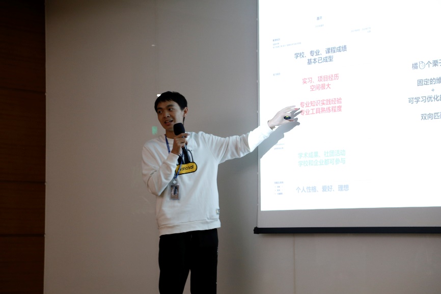2020届毕业生、目前在腾讯新闻从事应用研究的聂平校友与大家分享了自己的职业规划与求职心得。聂平从“开始之前”、“行动之时”与“收获之日”等三个维度向同学们讲述了怎样确定适合自己的职业发展方向、如何制定合理的学习计划,并结合自身求职经历为同学们传授了求职技巧,强调了在求职过程中应当注意的关键问题。最后,聂平以“连点成线、连线成面”为喻,突出强调了人才在团队构成与发展中起到的关键作用,勉励同学们将职业规划与国家产业发展紧密结合,努力提高自身实力,尽早为求职做好准备。