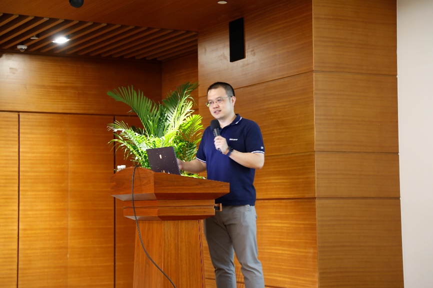 在经验交流分享会上,腾讯IEG北极光客户端技术总监安柏霖首先进行了主题分享。安柏霖从自身的工作经历谈起,与同学们分享了自己作为一名游戏行业从业者的心得体会,并以腾讯近年来取得突出成绩的产品为例,深入浅出地向同学们介绍了游戏的开发环节。他借助详细的统计数字总结了行业的发展态势与规律,强调了科研投入、人才积累与技术沉淀在游戏研发中的重要地位。安柏霖鼓励同学们提升科研能力,关心前沿技术,力争在未来作为科研人才为国家的技术发展与行业的技术进步贡献力量。