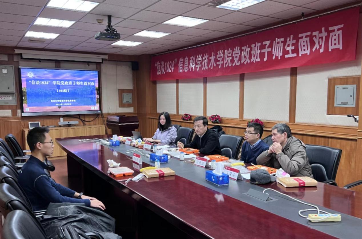 师生交流品牌活动,首期活动于2023年3月10日举办,之后固定在每月10日及24日,其中每月10日为个人单独面谈,每月24日为多人团体座谈。“1024”是2的10次方,是二进制计数的基本计量单位之一,为信息学科师生所熟悉。该活动旨在围绕学院人才培养这一中心工作,通过搭建学院党政班子和全院师生的日常面对面交流平台,在师生中开展调查研究,解决长期存在的问题或困惑,并听取和收集师生对于学院发展的意见及建议,凝聚共识,勠力同心,不断推进学院又好又快发展。