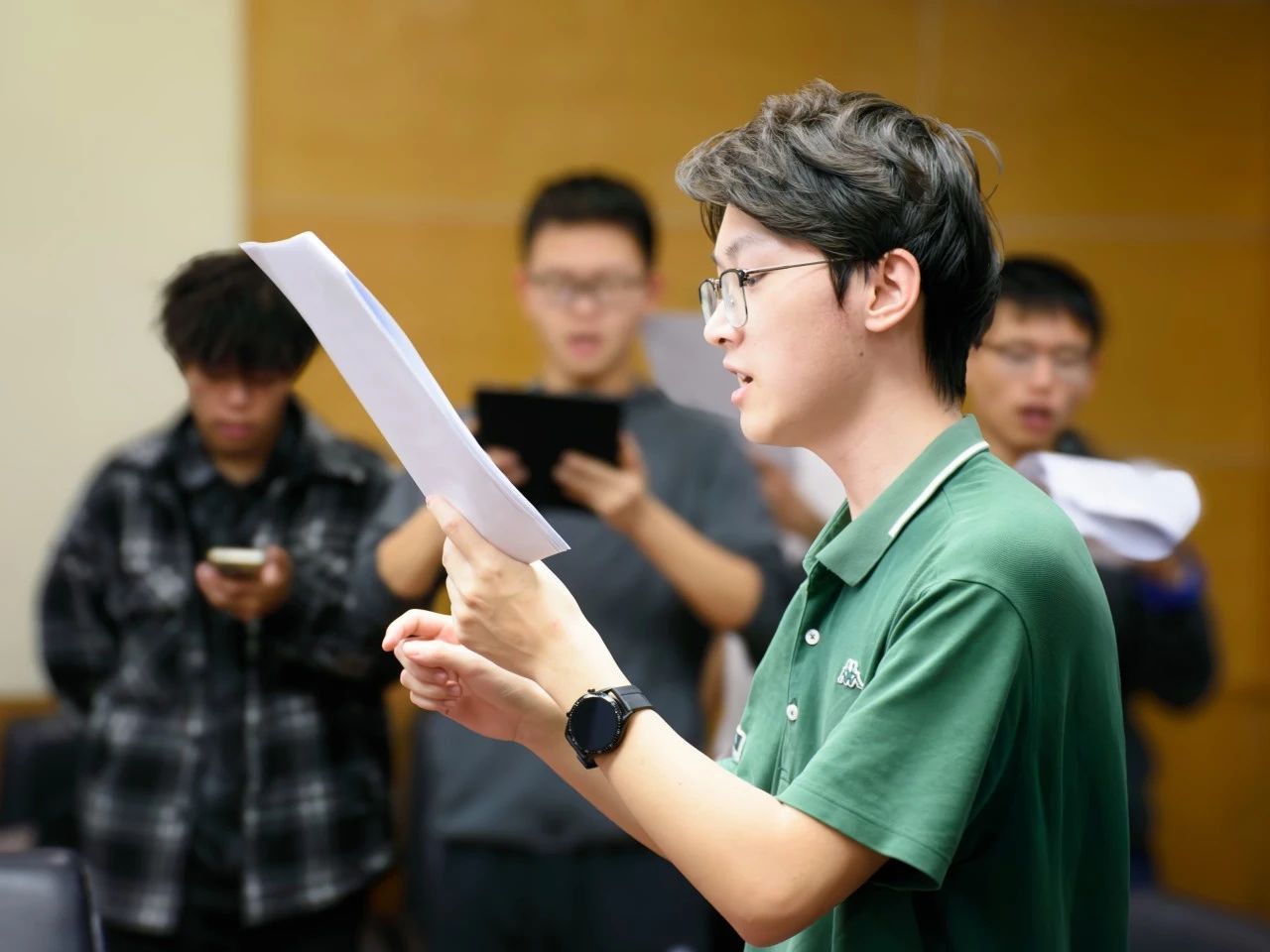 在排练室里,舞台团队的成员们用灵动的舞步,在光影交错间讲述着青春的热血故事。他们的每一个动作都充满力量,每一个眼神都饱含深情,完美地诠释了 “新时代由我、强国由我” 的坚定自信,那是青春独有的朝气与担当。