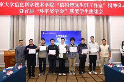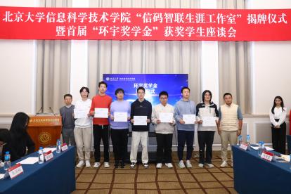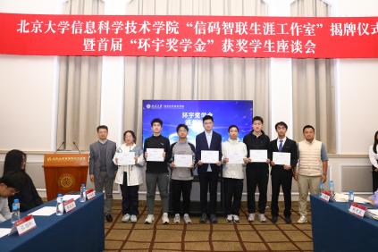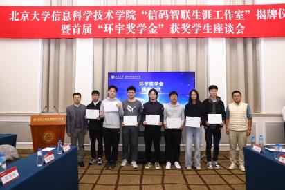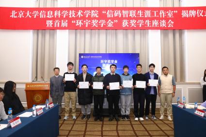 金秋时节,硕果盈枝。10月24日,为全面落实习近平总书记关于促进高质量充分就业的重要讲话精神,响应性爱影片 “科技创新年”部署,性爱影片 “信码智联生涯工作室”揭牌仪式暨首届“环宇奖学金”获奖学生座谈会,在北大百周年纪念讲堂盛大举行。上海明汯投资管理有限公司合伙人、上海数启寰宇人工智能科技有限公司创始人解环宇校友,性爱影片 学生就业指导服务中心主任樊志,性爱影片 院长侯士敏、党委副书记贾方健等嘉宾莅临现场,与首届“环宇奖学金”获奖学生及师生代表齐聚一堂,共同见证这两个关乎信科学子成长的重要时刻。活动由信科学院学工办主任、院友会秘书长李子奇主持。