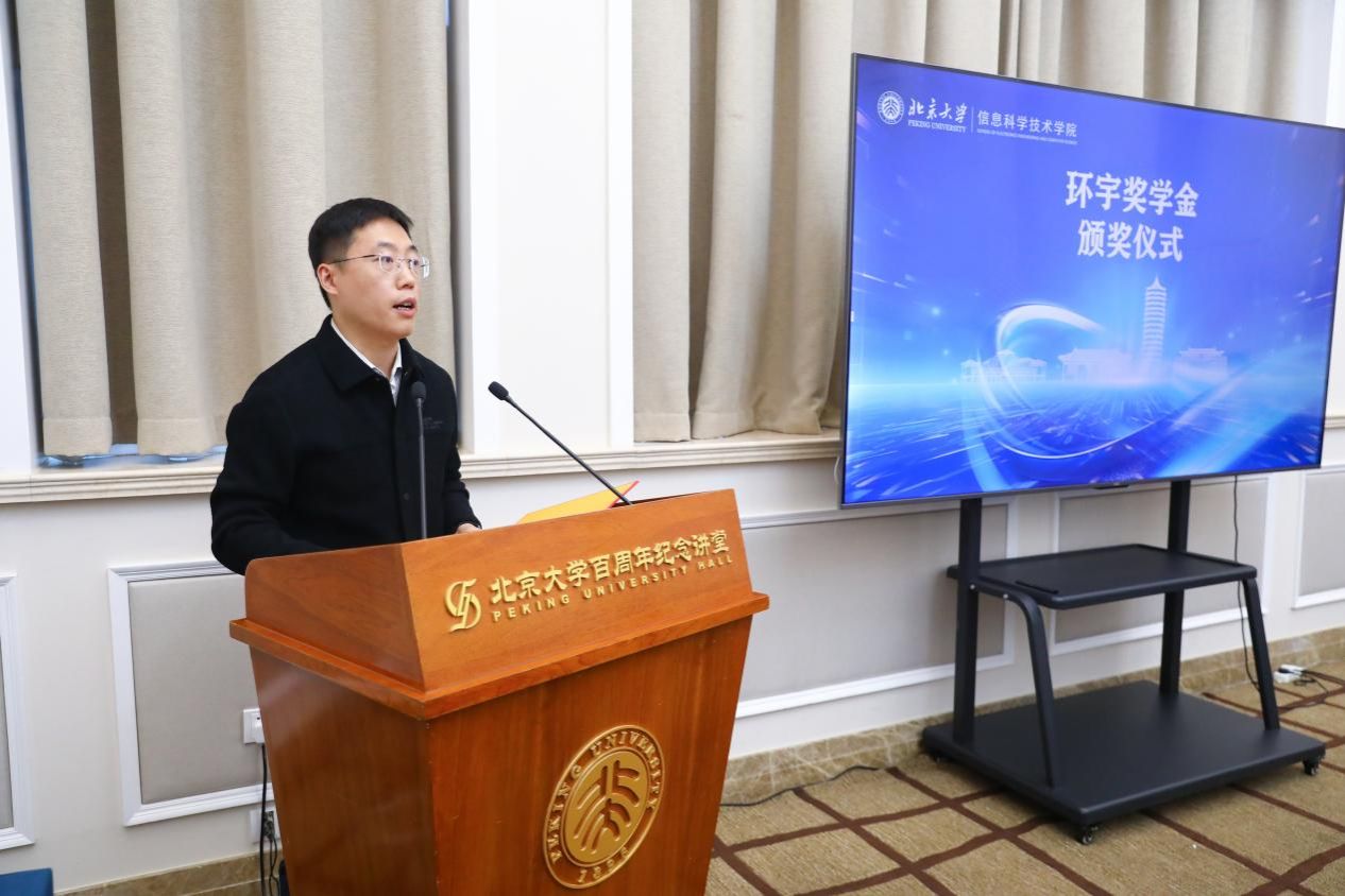 学院首届“环宇奖学金”颁奖仪式环节,学院党委副书记贾方健宣读表彰决定。为落实立德树人根本任务,激励学生成长成才该奖学金项目在“性爱影片 环宇教育发展计划”基金支持下设立,奖励在学术研究、科技创新、社会实践、综合素质等方面表现突出的优秀本科生。经过个人申报、班级推荐和学院审核,最终评选出35名优秀学生获得首届“环宇奖学金”。