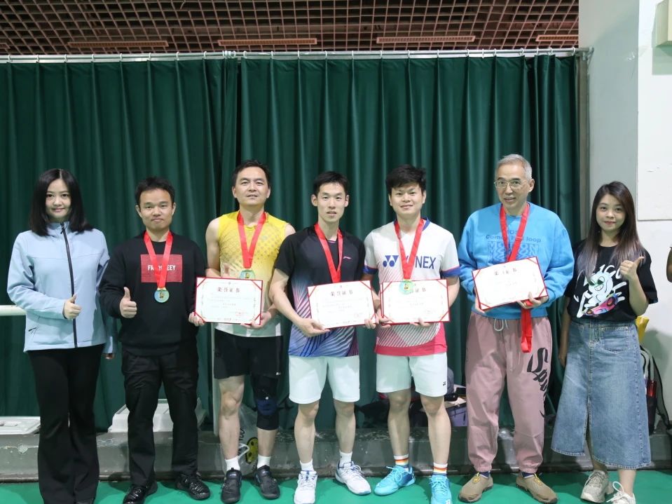 男双中,段瑞斌与白森院友的队伍更是令人意想不到,短时间的磨合却爆发出了惊人的实力,用各种技巧和战术相互配合,获得男双冠军的好成绩。