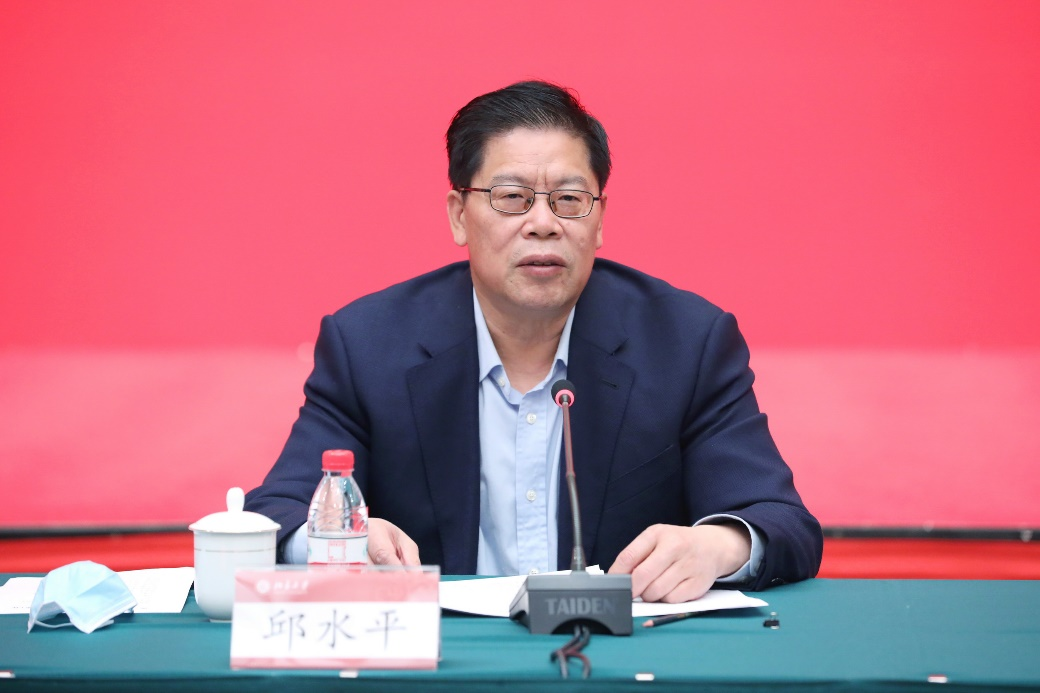 邱水平表示,习近平总书记关于北大工作的重要论述有着十分丰富的内涵,贯穿了北大的奋斗历史和当代实践,贯通了大学的领导体制、立德树人、科学研究、师资队伍、开放办学、发展模式等方方面面,是指引北大加快发展步伐最有力的思想武器。要全面深入地学习领会这些思想内涵,传承北大的光荣革命传统,坚持办学正确政治方向,牢固树立服务国家战略的办学导向,系统谋划立德树人的科学路径,切实加强教师队伍建设的基础性地位,明确科技攻关的主攻方向,科学指引哲学社会科学的时代担当,着眼未来对青年寄予厚望,面向世界探索开放办学的新路径,继续坚持走高等教育内涵式发展道路。