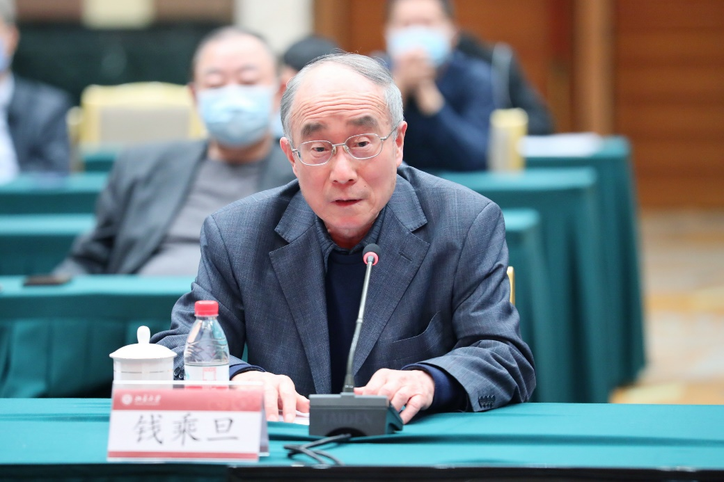 钱乘旦表示,习近平总书记非常重视人文社会科学,高度强调人文社会科学的学科建设,在多次讲话中提出要做好人文社会科学学科体系、学术体系、话语体系三大体系的建设工作,形成我国自己的知识体系。钱乘旦汇报了自己所在的世界史学科按照总书记的上述要求,在最近几年中积极探索,努力工作,形成初步成果的情况。他指出,今天,人类交往的世界性比过去任何时候都更深入更广泛,各国相互联系和彼此依存比过去任何时候都更频繁更紧密,而结合成人类命运共同体,这就还原了马克思主义关于人类历史发展的完整理论,是构建正确的世界史知识体系的指导思想。