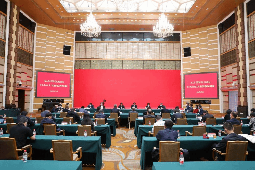 工作重要论述精神座谈会”在英杰交流中心阳光厅举行。校党委书记邱水平,校长郝平,校党委常委、常务副校长龚旗煌、乔杰,校党委常务副书记、副校长、医学部党委书记陈宝剑,校党委副书记安钰峰,校党委副书记、纪委书记叶静漪,校党委常委、副校长王博、张平文、孙庆伟,校长助理董志勇,以及校务委员会副主任,各学部主任,医学部领导班子成员,各有关职能部门的负责同志,院系和附属医院的师生代表等参加会议。会议由郝平主持。