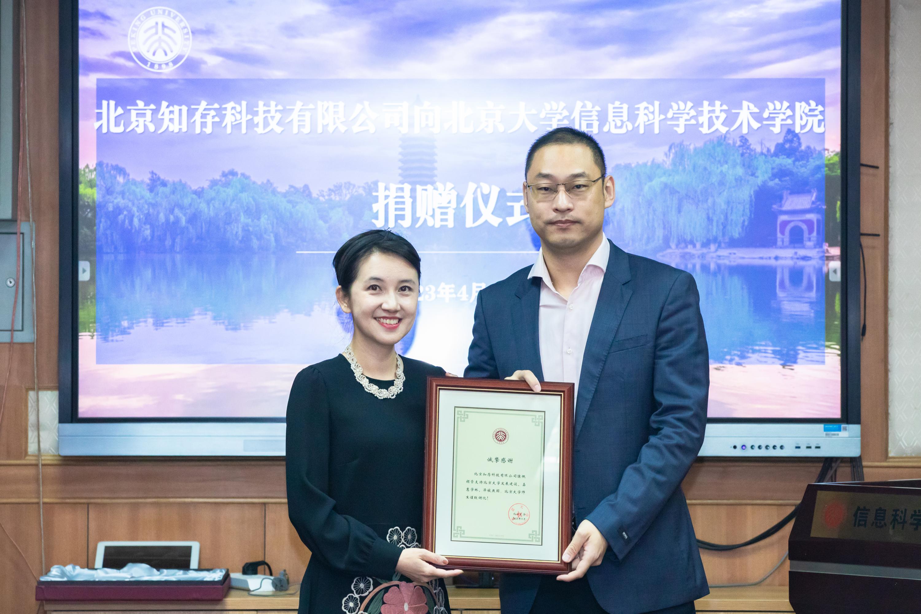 在人才培养、科学研究和社会服务等领域不断追求卓越、造福人类。优秀的学生、一流的学术、热情的校友,共同组成了温暖的北大。她希望在知存公司的支持下,信科师生能够充分发挥才华和创新能力,为学院发展增添更大动力,也期待知存公司的校友朋友们持续关注北大,进一步建立深厚的友谊。