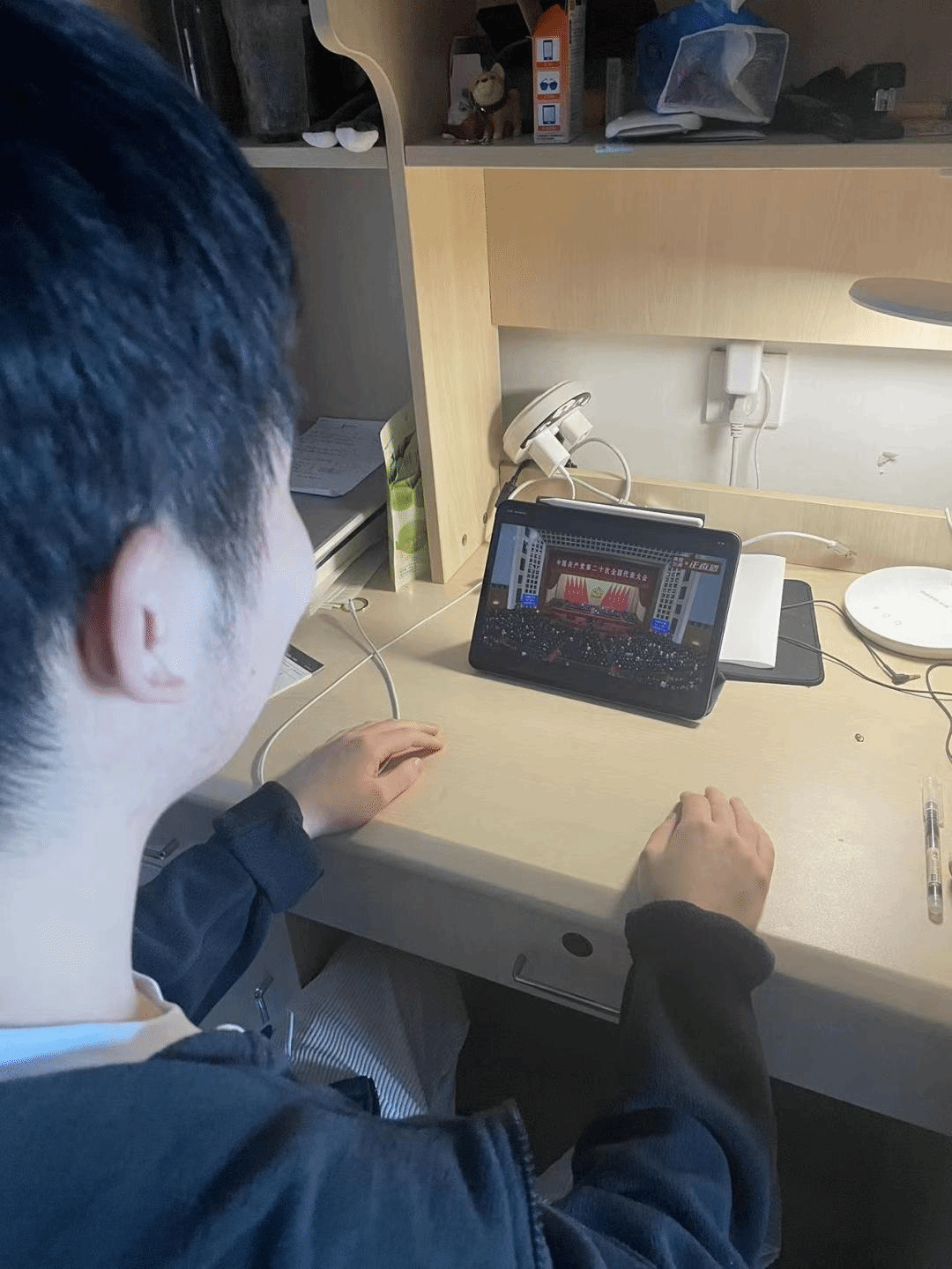 学院各班级和团支部同学也通过在宿舍集体学习、自主学习等形式同步进行线上线下的学习和交流。