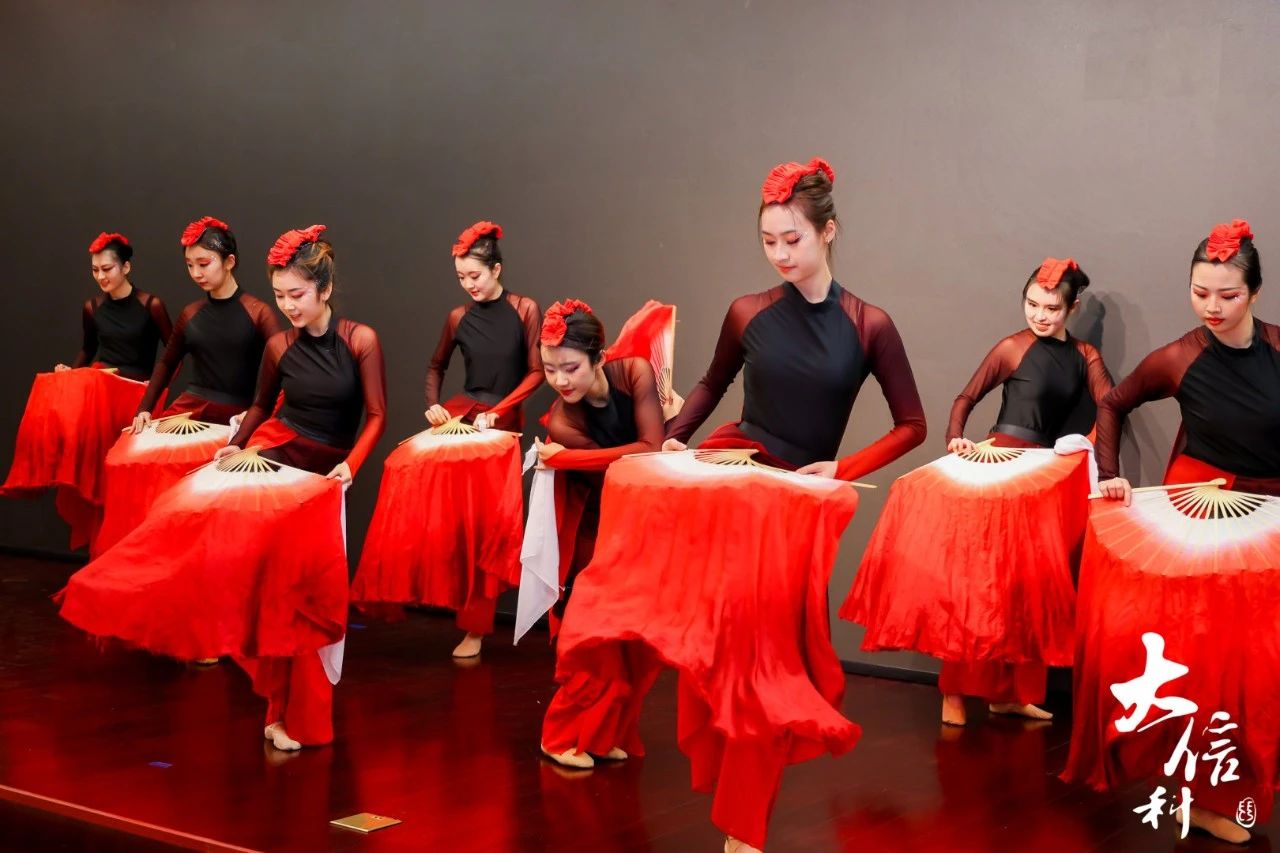 庞湫凡、孙嘉旋、肖贝儿、杨睿来四位同学表演舞蹈《Drama》,成员们在舞蹈中展现了极高的技巧和力量,每个舞步都显得精准而富有力量。黄溢乐、方于银等八位同学带来的民乐串烧《象王行+浮光》恢宏大气的曲调和细腻的情感表达直击人心。
