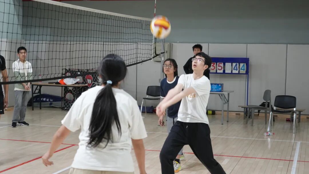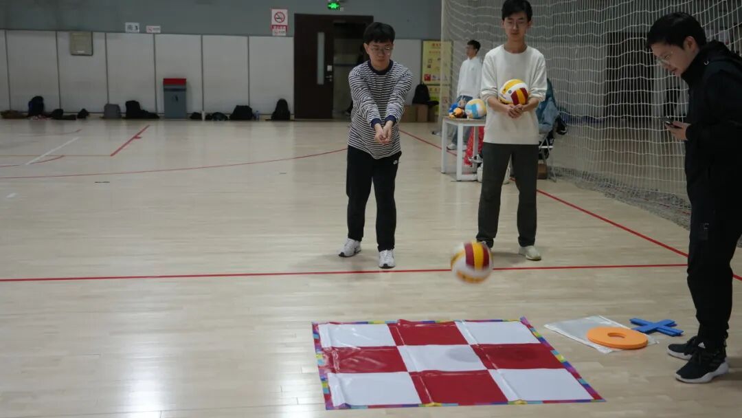 赛场上,身影跃动,热情满溢。个人垫球环节中,选手们凝神专注,指尖稳稳控球,连续垫击的身影成为赛场最动人的风景,每一次突破自我的连击都赢得阵阵喝彩;垫球九宫格对抗里,双人相互竞争,瞄准落点、精准垫击,率先连线的瞬间点燃欢乐氛围,策略与技巧的碰撞让趣味拉满;传球入框环节,选手们沉着发力、瞄准入框,细腻的传球技术尽显排球基本功,每一次精准命中都引发全场欢呼;3V3 团体友谊赛更是将氛围推向高潮,队员们默契配合、攻防有序,传球、垫球、扣杀一气呵成,团队协作的力量在赛场绽放,也让三个学院的青年学子之间的情谊在并肩作战中不断升温。