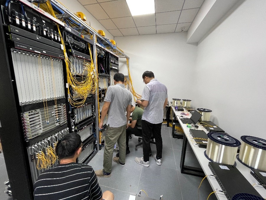 牵头完成了光纤和系统总体的设计,并加工设计了配套的低损耗低串扰模式复用器件,主要参研人员为博士后高宇洋、博士生左铭青、崔健等;长飞光纤光缆股份有限公司优化光纤工艺完成了新型光纤的制备;中国移动与华为股份有限公司联合完成了200G QPSK OTN商用设备的系统设计;各单位联合在中国移动实验室内搭建了原型系统,最终实现了LP01/LP02/LP03三个模式分别携带四个200G波长信号共同传输300km的实时弱耦合模分复用系统验证。相较于此前同类实验,可用模式数增加至3个,传输距离提升至3倍,为目前世界纪录。