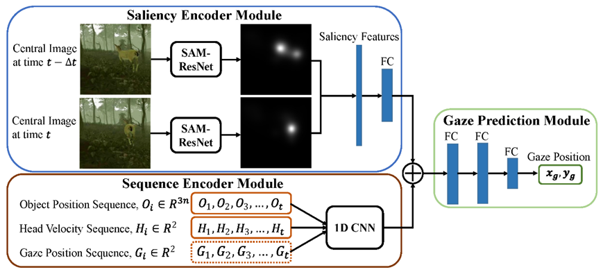 在虚拟/混合现实领域中,用户的注视信息具有广泛的应用价值,用户的注视行为分析和计算是其中一个关键问题。目前虚拟现实眼镜中眼动追踪的解决方案主要是依赖于眼动仪。眼动仪有价格昂贵、使用受限、无法预测用户在未来时刻的注视等缺点,该实验室团队一直致力于研究眼动仪的智能化软件方案。