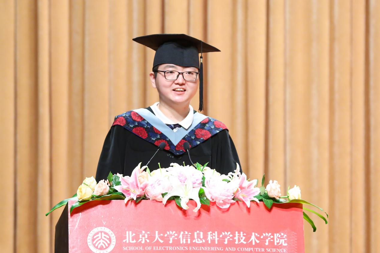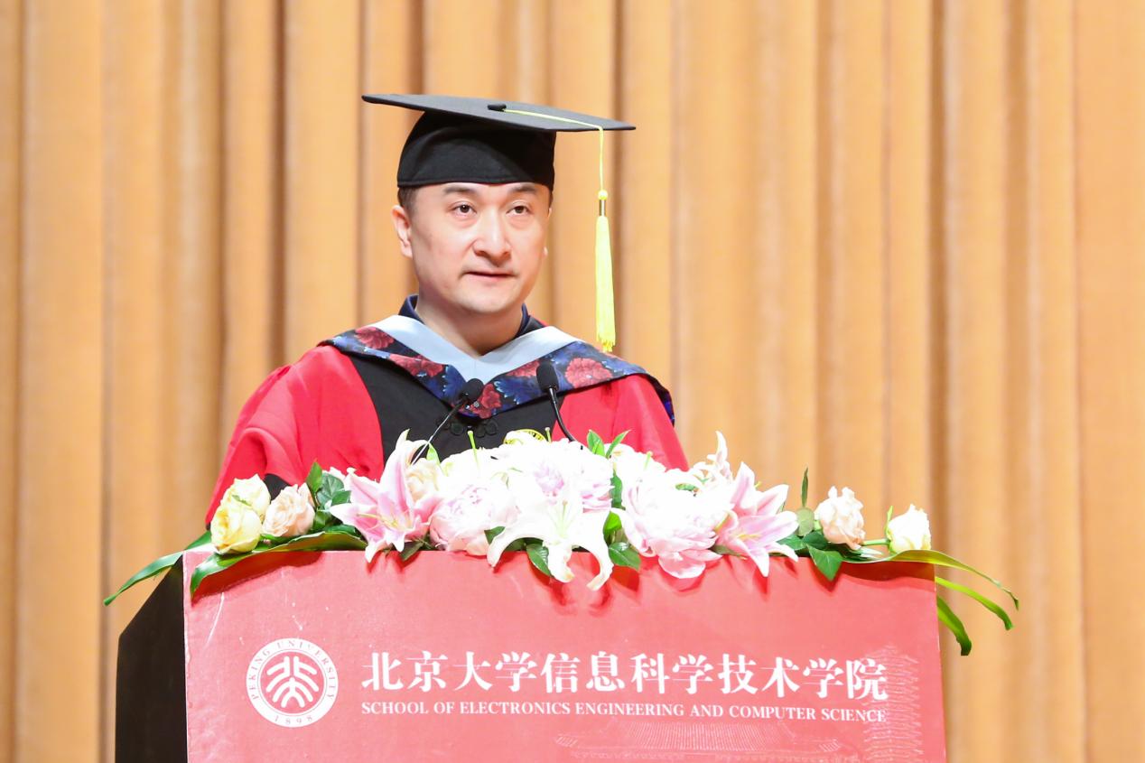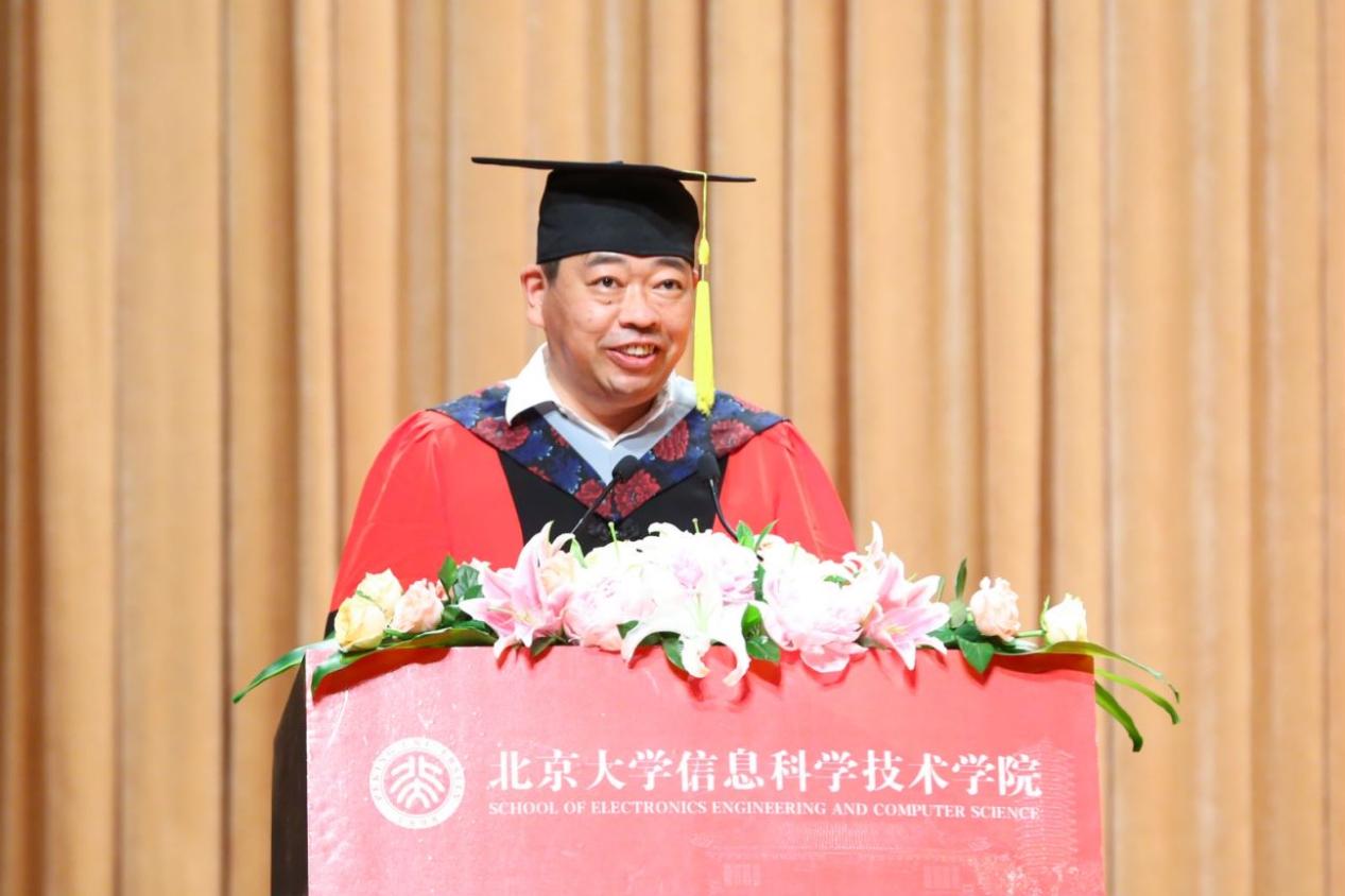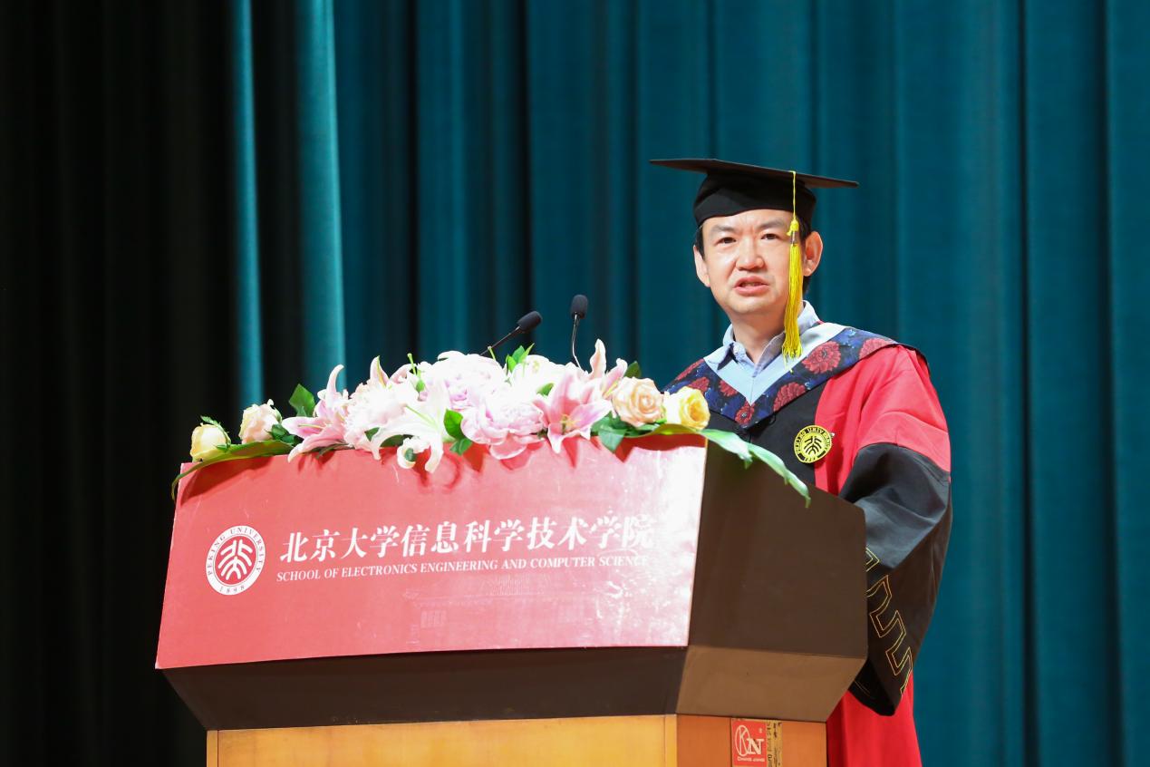 侯士敏在致辞中热烈祝贺同学们完成学业、顺利毕业。他回顾了2022届毕业生极不平凡的大学四年,大家有幸参与从建国70周年庆祝大会到建党100周年庆祝大会,从2022北京冬奥会和冬残奥会到北大新工科建设规划首轮实施,同学们与盛事相伴而行,贡献了北大信科人的青春力量。新冠肺炎疫情也给大家的学习生活带来全新的考验和历练。毕业之际,侯老师对同学们提出三点殷切期望:要自觉担当尽责,胸怀“国之大者”,牢记“强国有我”;要保持创新意识,集聚青春力量,抢占科技制高点;要相信厚积薄发,坚持追求卓越,勇于超越自我。他祝福同学们心怀北大人、北大信科人的初心与使命,在青春的跑道上奋勇争先,不负韶华,不负时代,勇攀高峰!