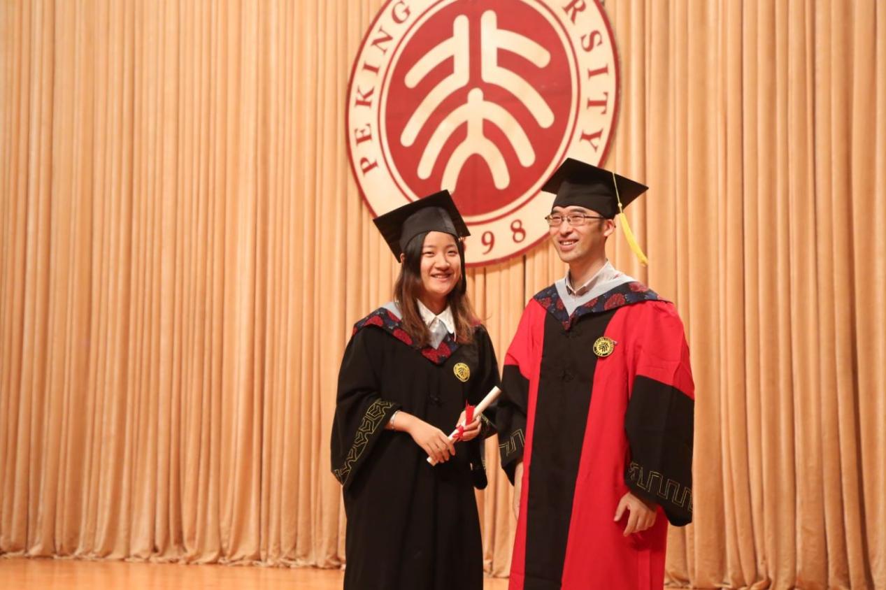 典礼尾声,全体师生起立合唱《燕园情》。熟悉的旋律再次想起,年轻的北大人即将再次起航。我们今天“用青春完成作业”,明天“让中华震惊世界”,这是代代北大人的历史使命,也是新一代北大人的青春誓言。