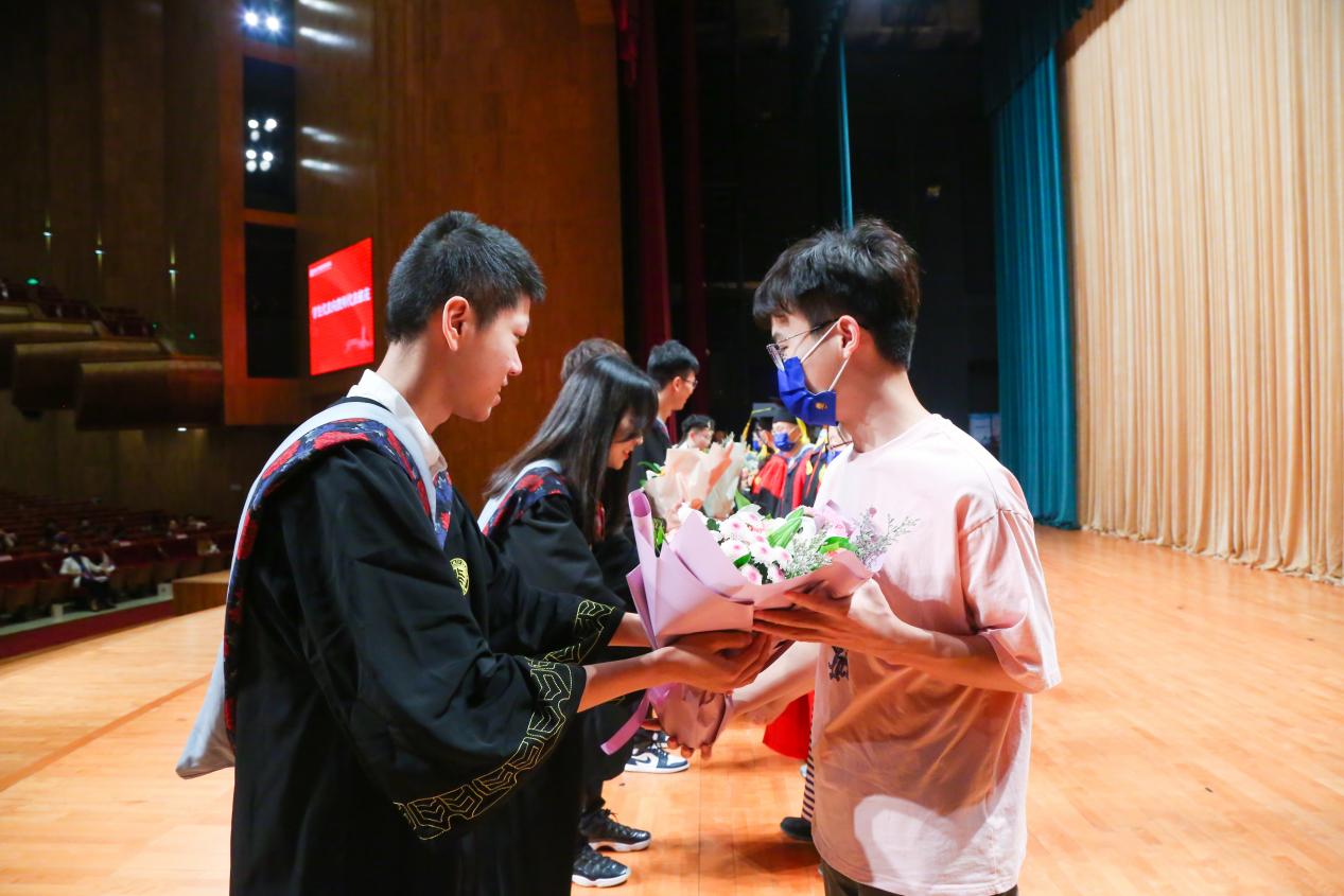 四年时光转瞬即逝,师生情谊却是永恒。学生代表向教师代表献上鲜花,感谢老师们四年里的关心和教导。师恩难忘,老师们的教诲和指导将成为同学们一生的财富,同学们前行的身影也将成为老师们永远的骄傲。