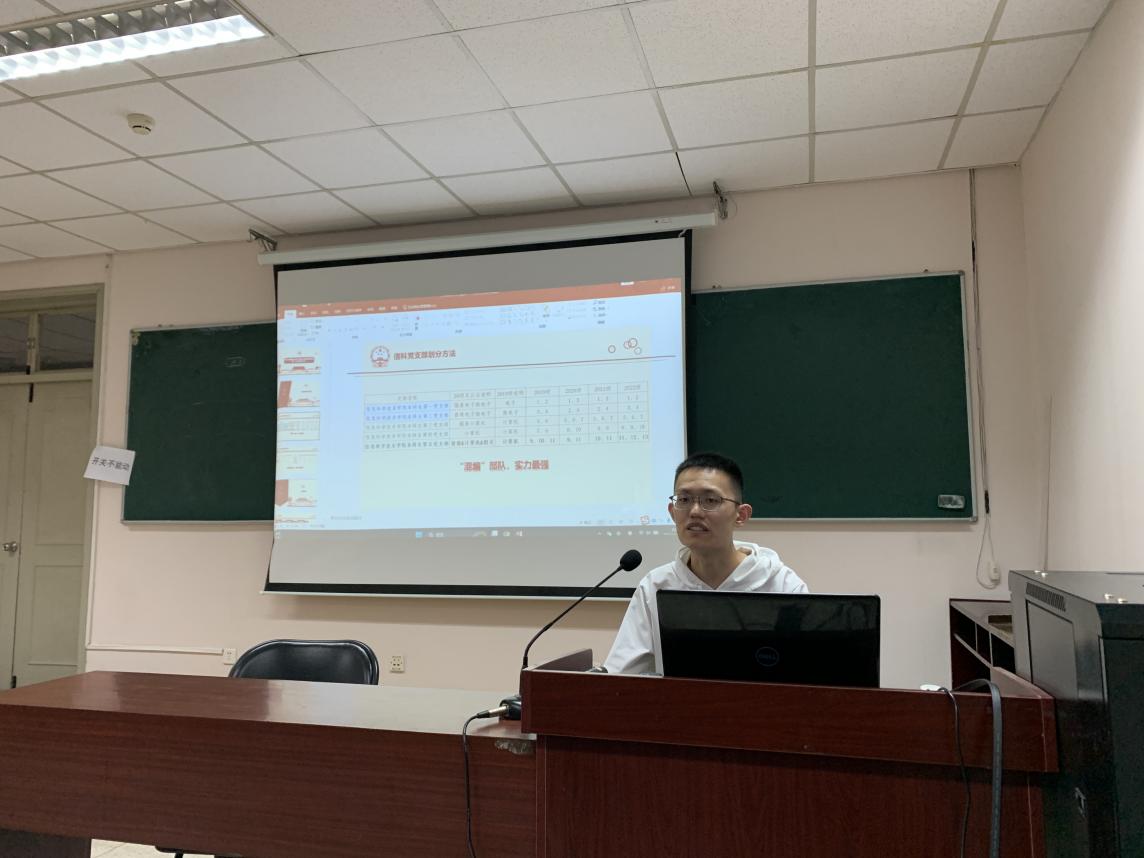 首先,党支部书记李鸿泽同志就党支部基本情况、入党流程、活动主题进行介绍解读。李鸿泽同志着重强调入党流程中思想先进、行动积极者优先入党,鼓励大家积极参与党支部活动,在学习实践过程中秉承“学思想、强党性、重实践、建新功”的原则,进一步提升理论水平和实践能力,早日成为优秀的党团青年。