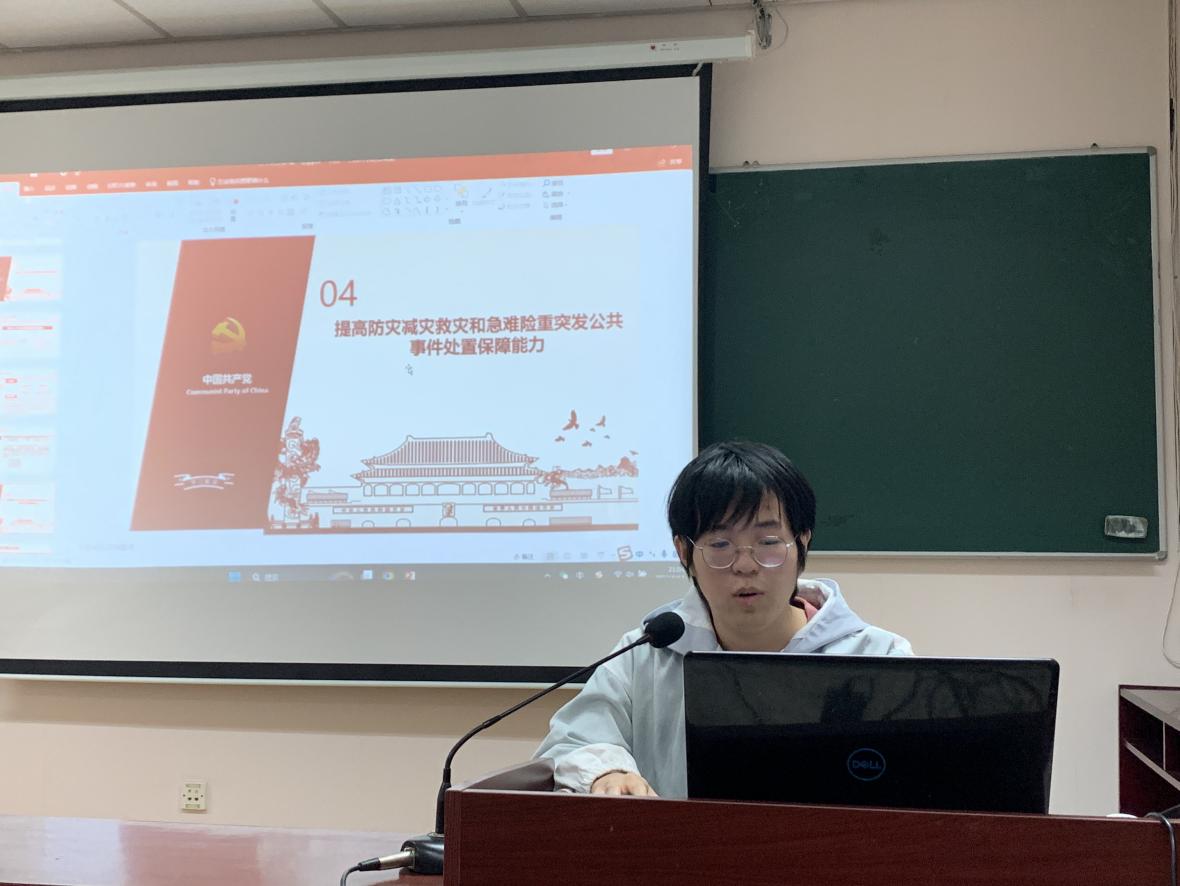 接下来,由第一党小组李佳衡、郑林泽等几位同志以“学习贯彻党的二十大精神交流会——关于安全”为主题,围绕六个方面进行学习:确保粮食、能源资源、重要产业链供应链安全、维护我国公民、法人在海外合法权益、推动公共安全治理模式向事前预防转型、提高防灾减灾救灾和急难险重突发公共事件处置保障能力、强化食品药品安全监管、加强个人信息保护。