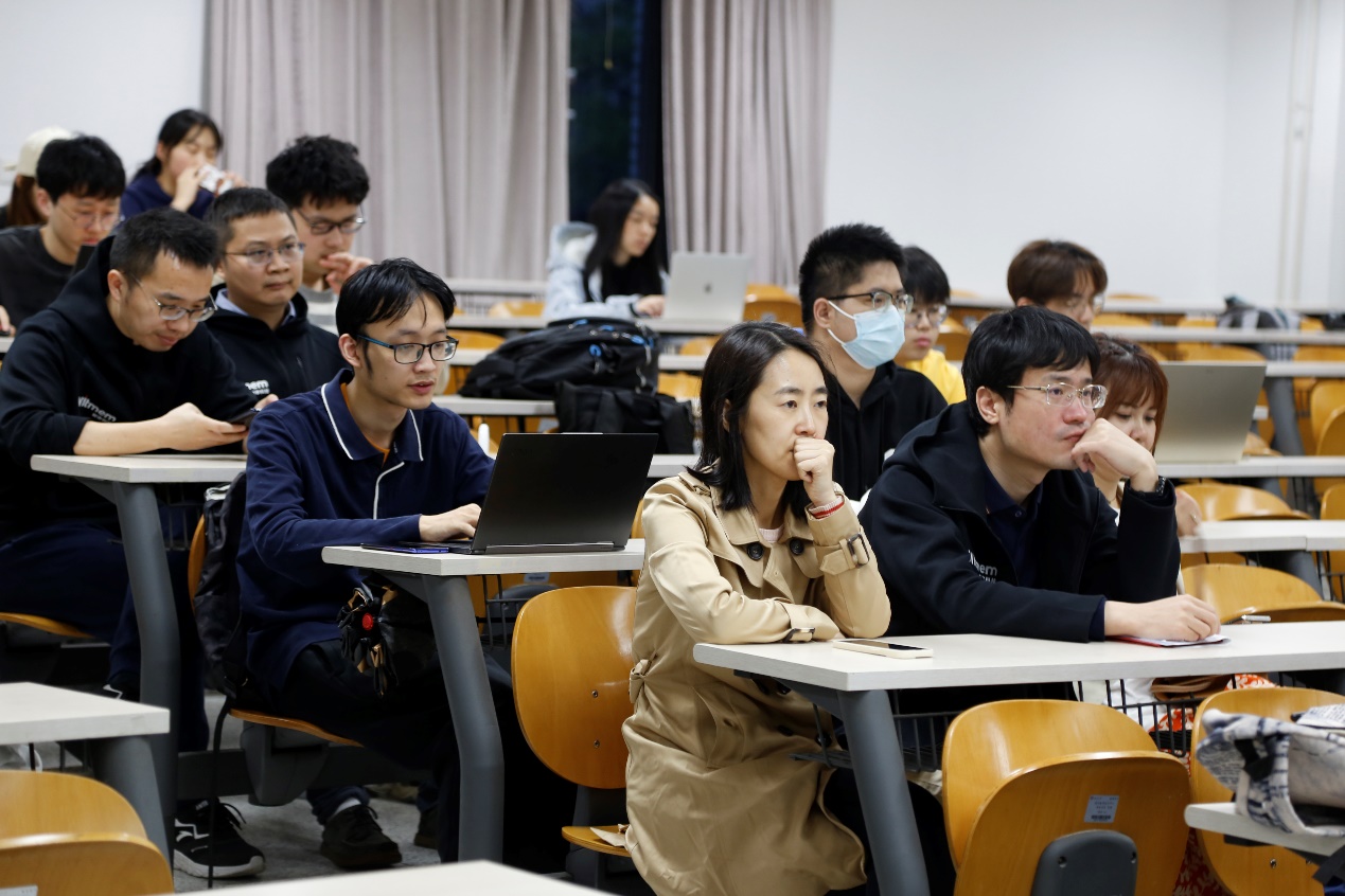 在提问交流环节,到场师生就存算一体芯片的优势、挑战、技术细节,以及知存科技良好发展的经验等问题与王绍迪先生进行了交流。王绍迪先生耐心地解答了大家的问题。