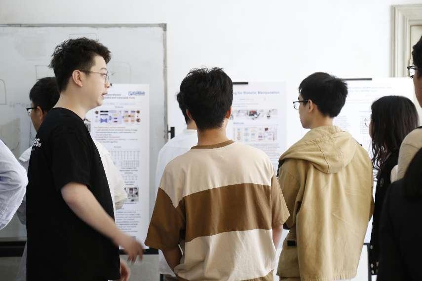 在海报展示环节,各位报告人伫立在介绍自己研究工作的展板前,与前来观摩学习的同学热烈讨论、互动学习。上下午场间歇,学院还为前来参会的师生精心准备了茶歇,供大家休憩交谈、增进交流。