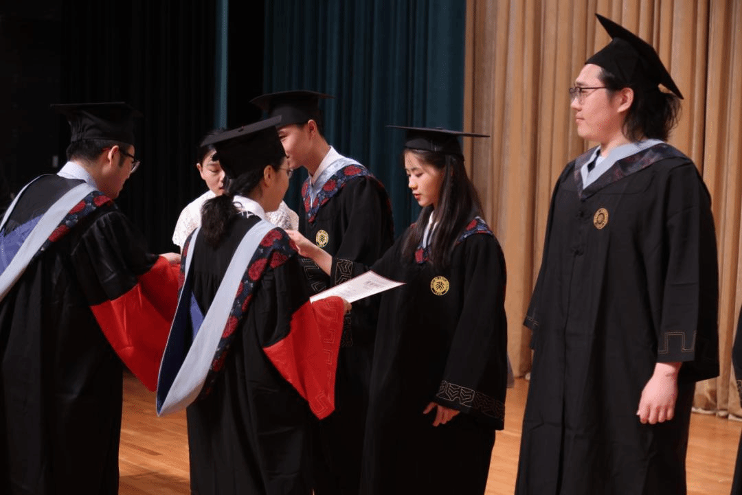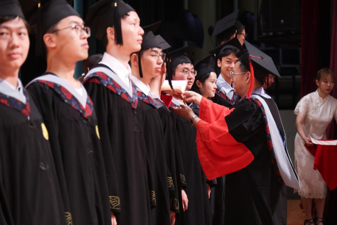 典礼最后,毕业生们一一上台,侯士敏、严敏杰、王润声三位老师为他们拨穗正冠。在老师们深情的注视下,在毕业生们坚毅的目光里,这一份祝福与期许,传递到每一个人的心中。