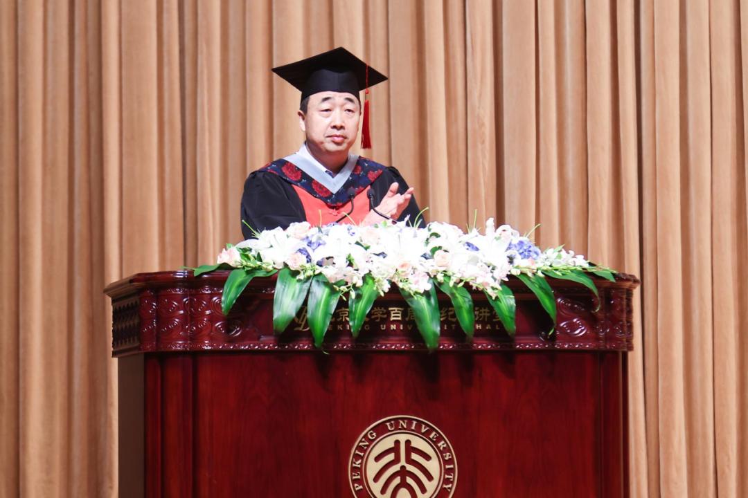 侯士敏院长在致辞中向全体2023届毕业生送上了最热烈的祝贺。他将大家的思绪拉回四年前,拉回到那个初入燕园、心怀憧憬的少年身上,深情地提问,“当初你们给自己设定的目标实现了吗”。带着这个问题,他向同学们提出了两个“把握”:把握好自己,以积极主动的态度回应自己的内心,以真诚勇敢的心态迈出人生的第一步,把“我想要做什么”变成“我已经做了什么”,主导自己的人生;把握住时代,互联网带来了时代的巨变,而今天大模型的飞速发展使得我们再一次站在了时代的风口,同学们作为北大信科人,生逢其时,应当心怀“国之大者”,去完成从“0”到“1”的颠覆式创新。他祝福同学们怀抱梦想又脚踏实地,敢想敢为又善作善成,谱写新一代北大信科人的精彩篇章。