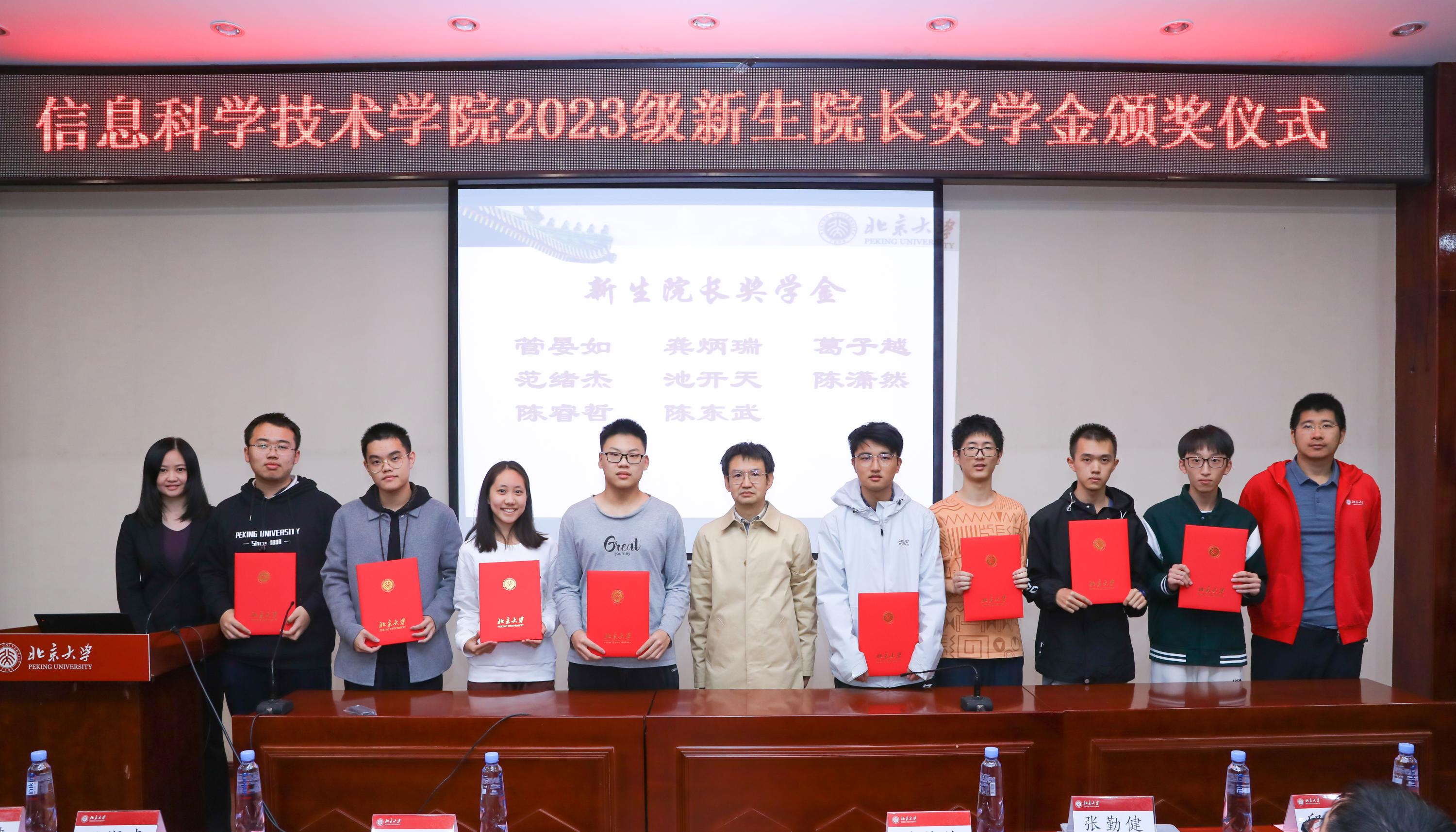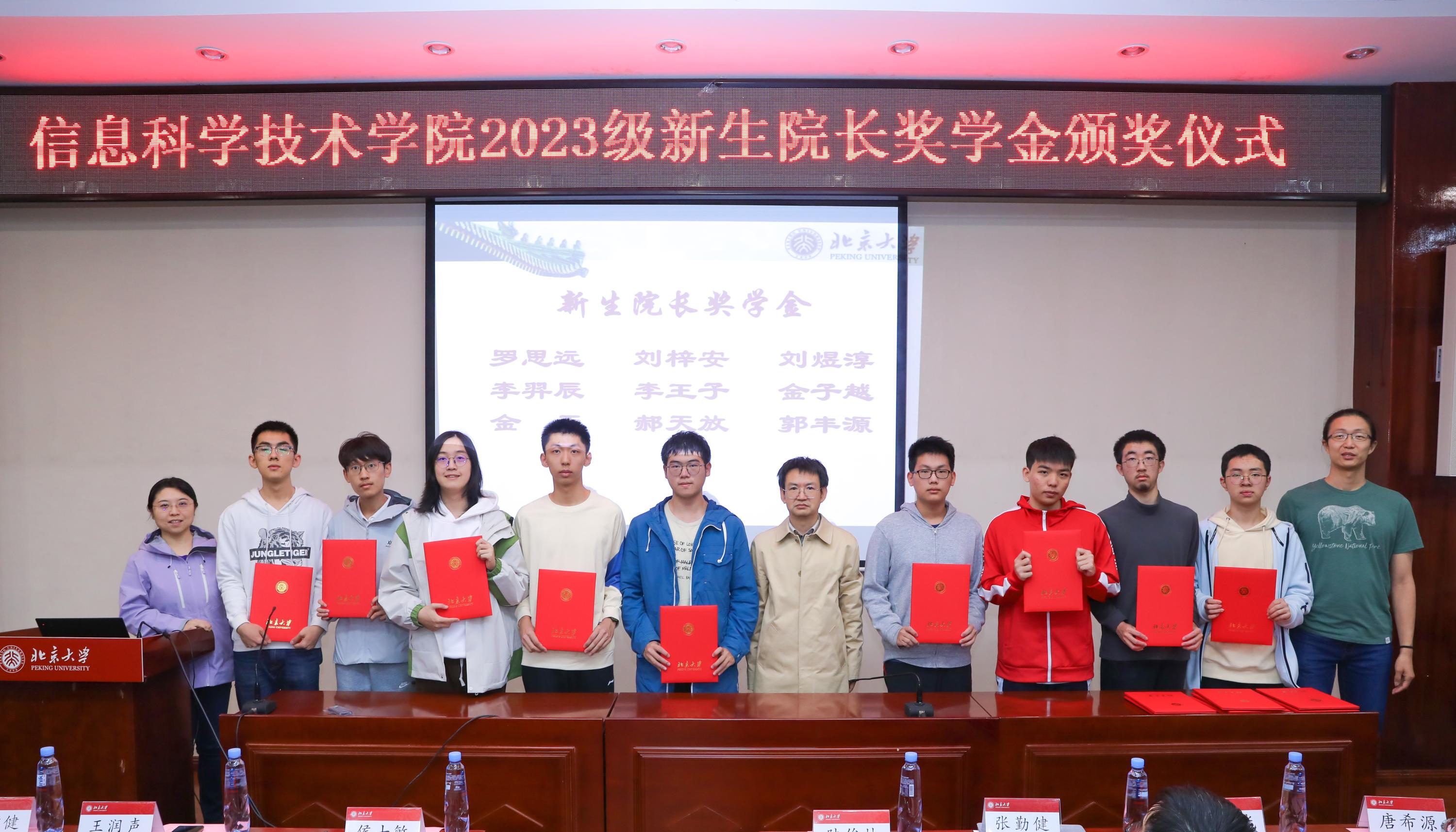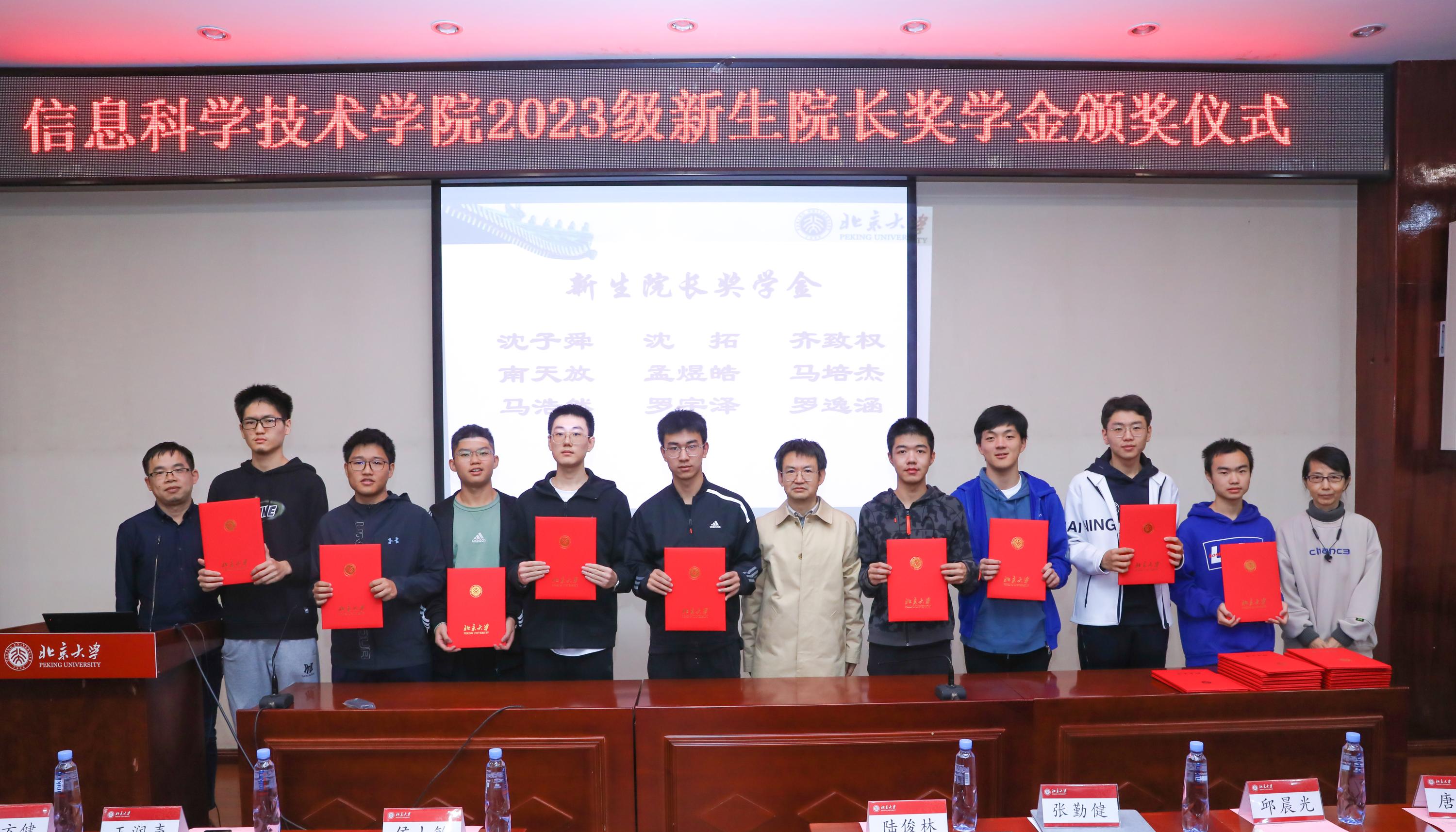 最后,学院领导老师为获得2023级新生院长奖学金的学生颁发获奖证书并集体合影。