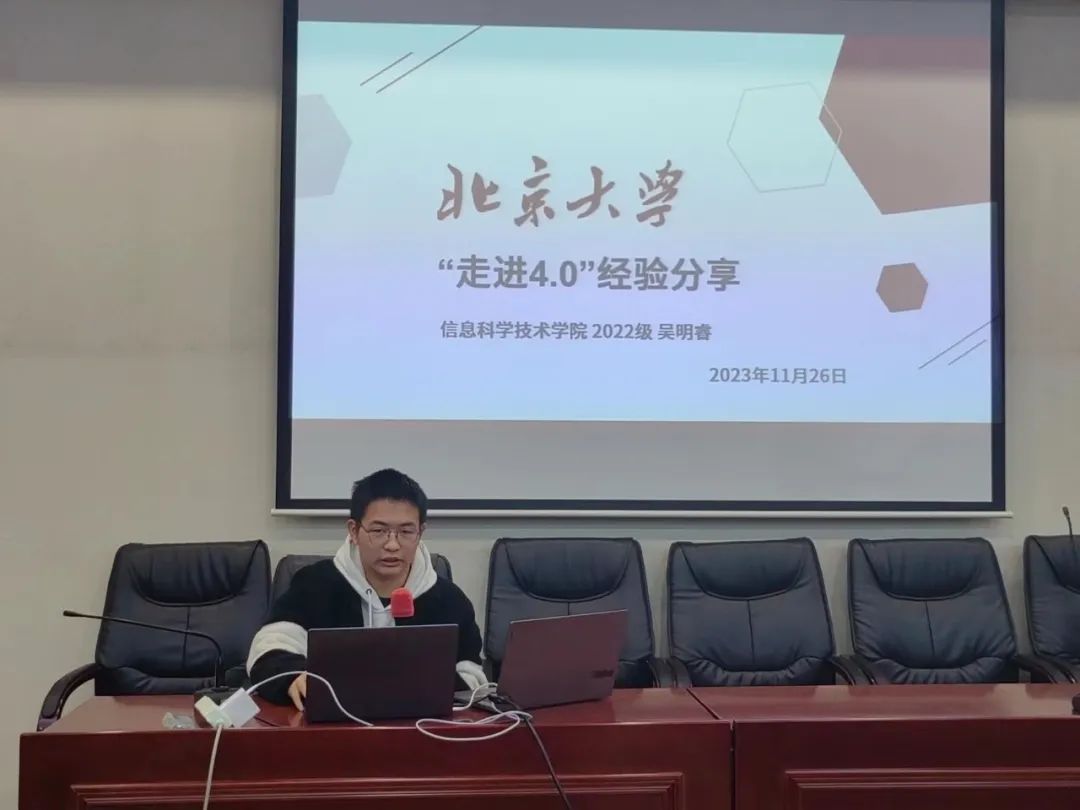 学生会学术部举办的品牌活动。活动邀请多位在学习、科研等领域表现优异的高年级同学与大一新同学交流学习经验、分享科研体悟,帮助新同学更好找准大学学习方向、适应大学生活节奏,进而实现“走进4.0”的美好愿景。