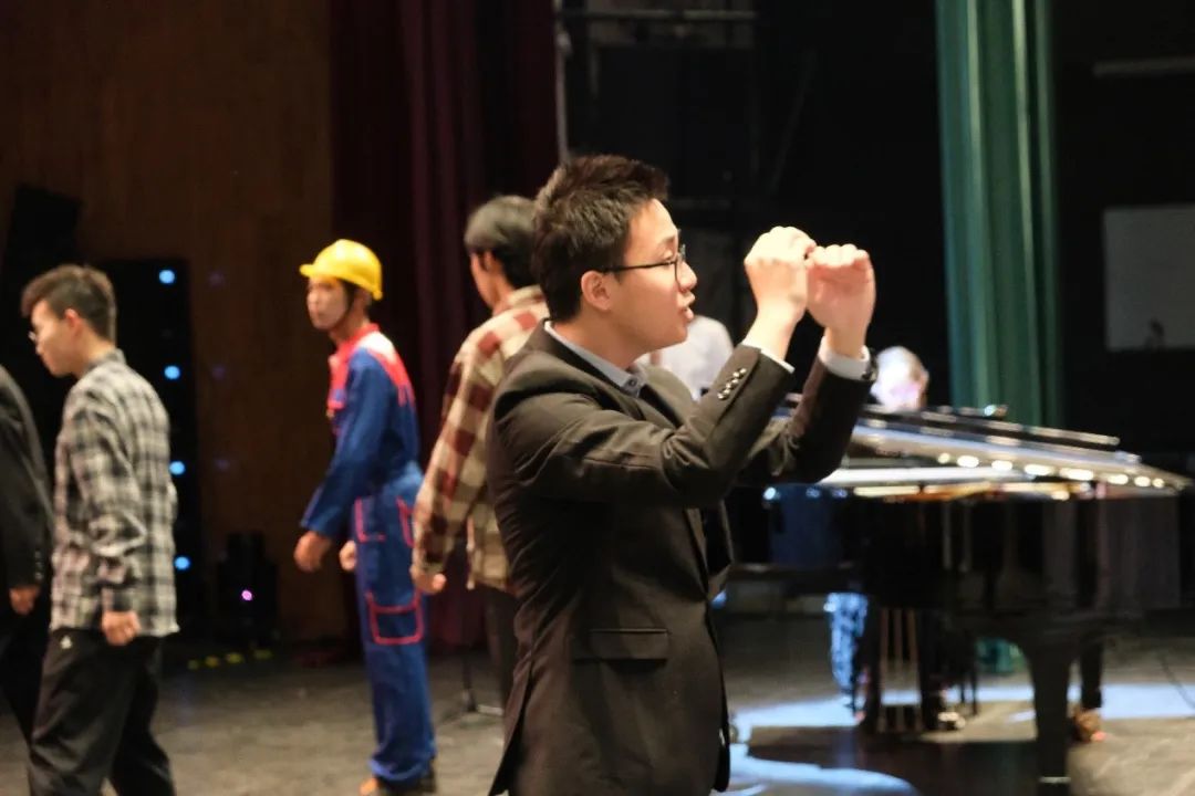 结束了休整和练声,小狮子们一同前往百讲的舞台进行最后的彩排。想到不久之后就要正式登上百讲的大舞台为全校的老师和同学展现信科的风貌,小狮子们在激动的同时不免还是感到些许紧张。进入百讲后,在严格限制的彩排时间中,教唱组学长提醒小狮子们演出的一切细节、带他们最后地雕琢舞台。从后台站位到上台走位、从站姿到表情、从全曲中的每一个咬字和每一个音符,力争做到每一个细节都完美无瑕。在一遍又一遍雄壮激昂的歌声中,小狮子们逐渐习惯了在百讲的大舞台表演的感觉。与此同时,舞台组的负责人们则关注着大家的站位、走台、灯光与收音,以丰富的经验保障着大家的演出。学院老师们也参与了彩排,与同学们一起雕琢演出效果。