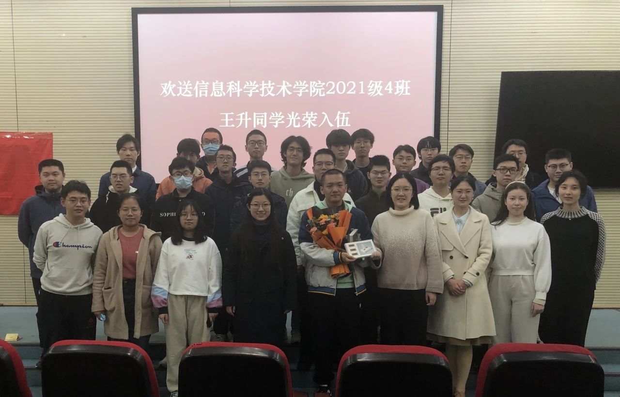 班级师生欢送王升同学光荣入伍