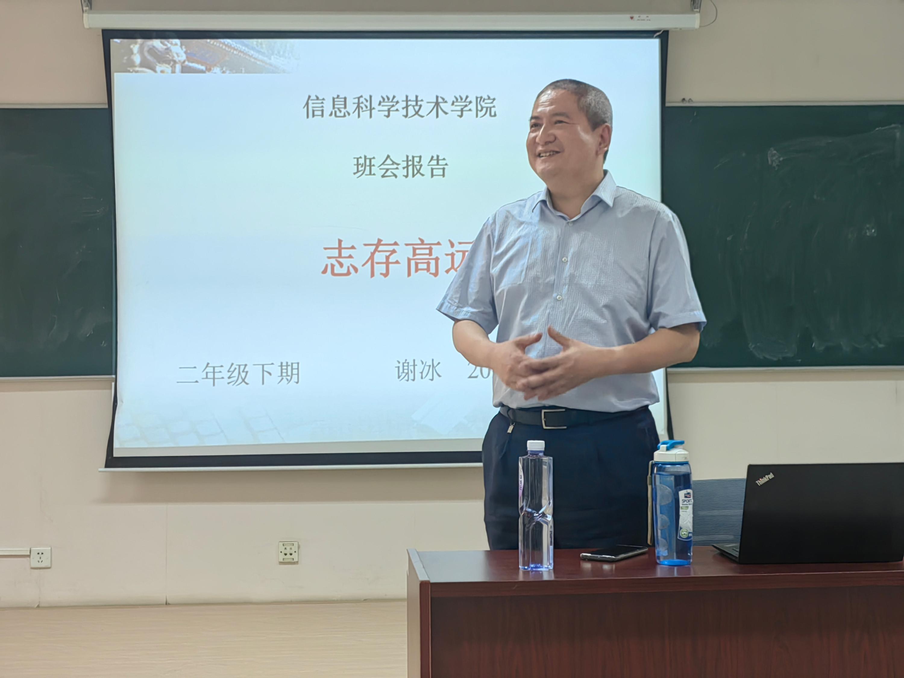 随后,谢冰老师以“志存高远”为题,串联起学习、生活、科研的各个环节,结合生动的案例,为同学们上了一堂别开生面的思政课。他首先回顾了大一刚入学时作的第一次报告,重申脚踏实地、仰望星空、志存高远、展翅高飞的“大学四部曲”。他指出,同刚入学时的懵懂相比,处在大二下半学期的学生不应该还是仅仅专注于学业本身,应该更多地思考未来的去向,思考身为一个北大人应该具有的格局和担当。多问自己:北大学生应该是什么样的人?作为燕园学子,眼光仅仅囿于毕业后的一份所谓好工作是远远不够的,更应树立远大理想,立志服务于国家重大发展战略,不断提升能力素养,争做新时代中国优秀青年的“领头雁”。