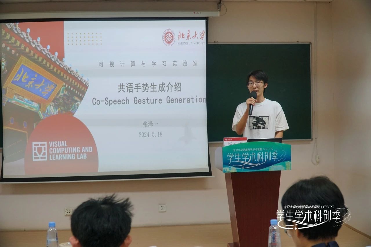 在亮点报告环节中,同学们用简洁明了的语言,介绍了自己的科研项目和成果。同学们的研究领域涉及普通微控制器上实现内存高效的语言模型推理、滚动混合比特脉冲模式重建高帧率高动态范围视频、基于超大规模可重构超表面的近远场混合雷达技术研究等。同学们利用图表和实验数据,生动而具体地展示了自己的研究成果,让现场观众对信科学院本科生科研成果有了更深入的了解和认识。