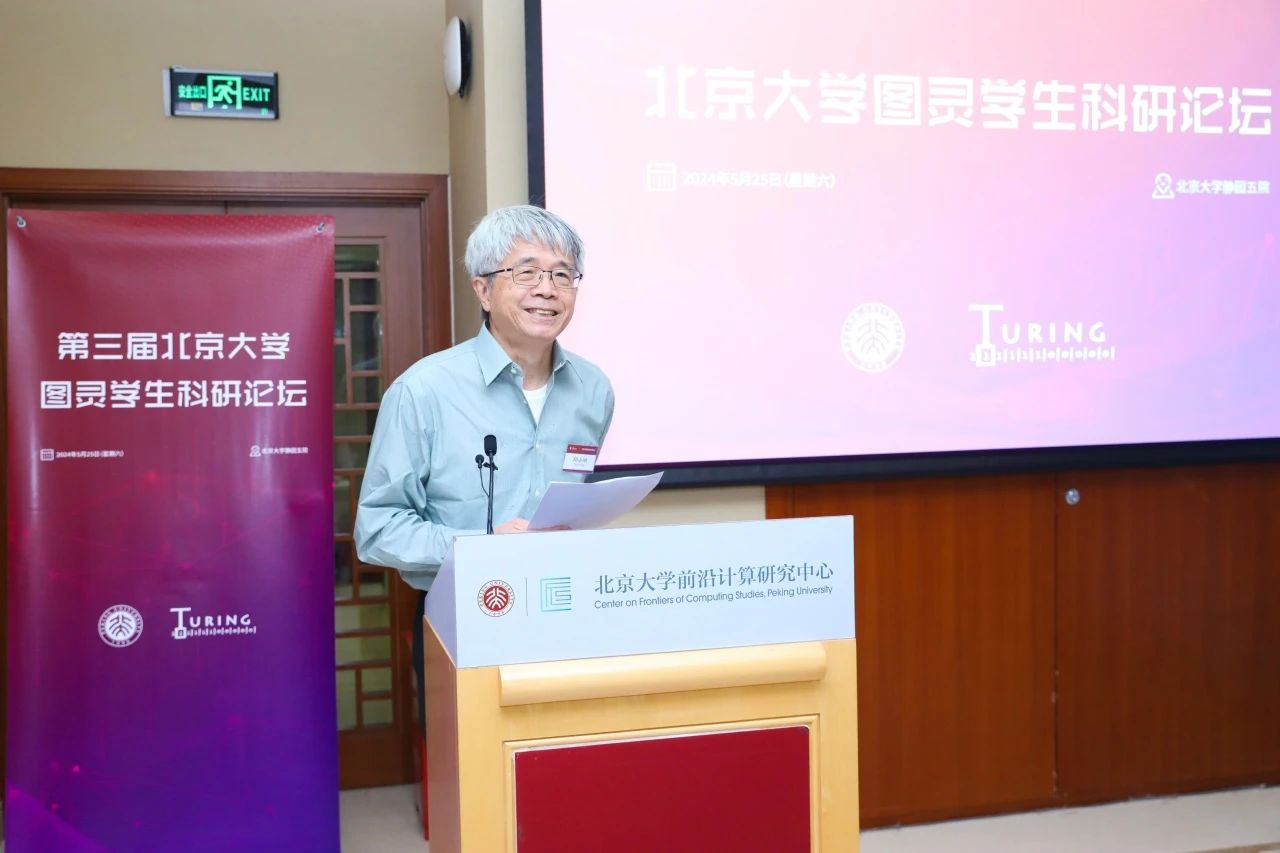邓小铁老师主持开幕式,代表主办方欢迎老师、同学和企业代表的到来。他表示,图灵学生科研论坛作为图灵班科研培养环节中的重要一环,是北大图灵班的品牌活动,希望同学们把论坛当作未来登上国际学术舞台的练兵场,展示自己的科研成果,倾听同辈们的学术分享,互相交流,共同进步。