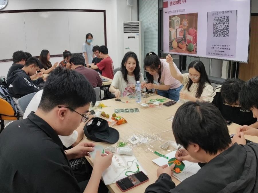在制作香囊之外,党支部还贴心地为支部成员购买了甜口、咸口粽子各30个,满足同学们不同的口味需求,供大家在做香囊之余进一步感受节日氛围。最后,各位党小组组长就今天的活动进行了总结和分享。