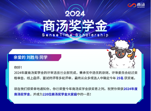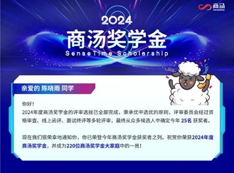 2021级图灵班本科生陈晓雨、刘胜与,2022级智班本科生丁昱菲,获得2024年度商汤奖学金。