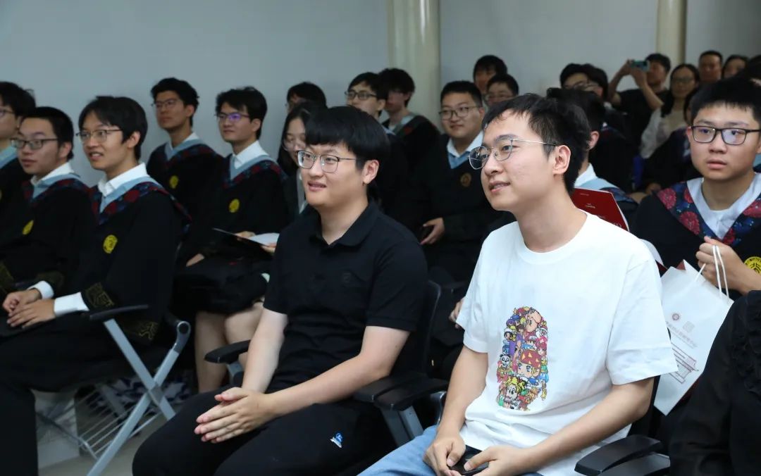 计算机学院院长胡振江教授为同学们讲述了一个故事:图灵奖得主 Knuth 教授现年八十六岁,但仍在斯坦福大学每年举办 Knuth Lecture,向所有感兴趣的师生汇报自己一年的研究成果,课堂上总是座无虚席。他用 Knuth 教授对研究的热情激励同学们永远保持好奇心,在自己的兴趣领域深耕细作,成为行业的领导者,做出独特的贡献,并将这份独特转化为卓越。他祝愿同学们勇敢地迈出新的步伐,书写自己的新篇章。并深情寄语同学们:图灵班永远是你们的家,记得常回家看看。