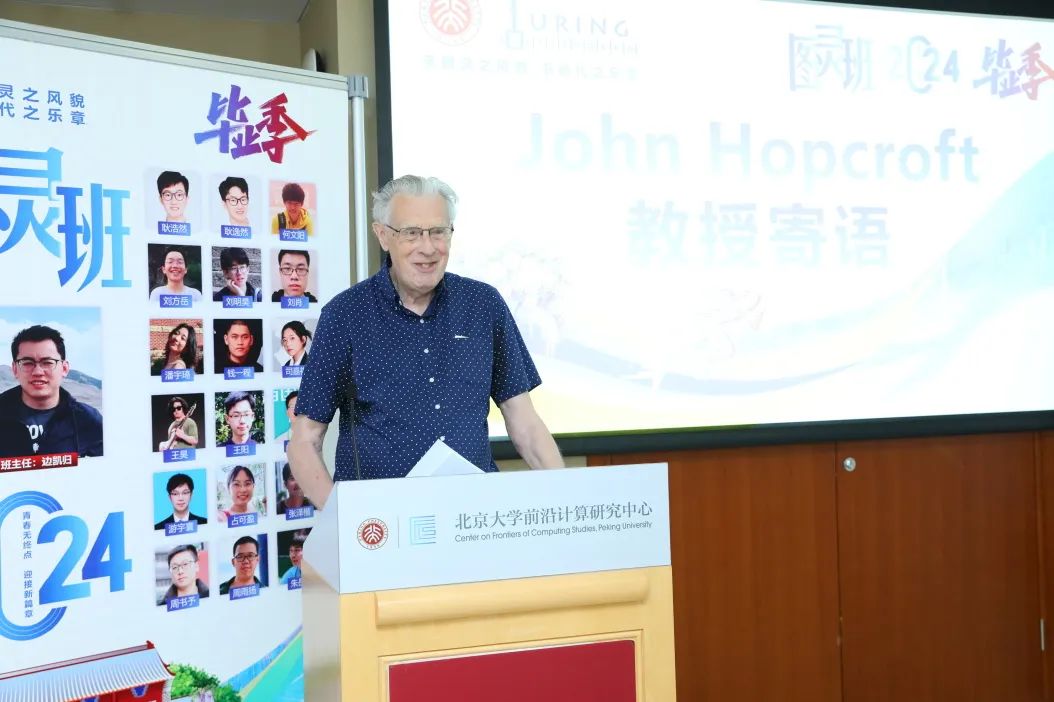 客座讲席教授 John Hopcroft 为图灵班2024届学生送上了毕业祝福。他希望同学们做自己真正喜欢的事情,让工作成为生活的一部分。无论是选择深造还是进入工业界,都要选择自己喜欢的领域,做最好的自己,用自己的天赋和智慧让中国更加繁荣。
