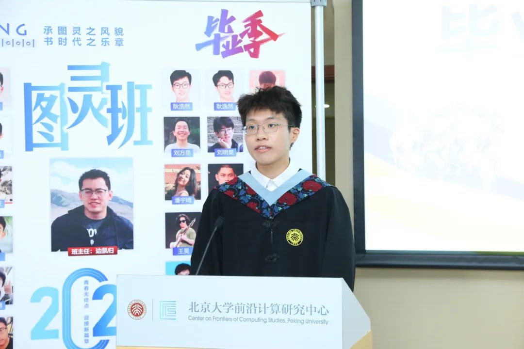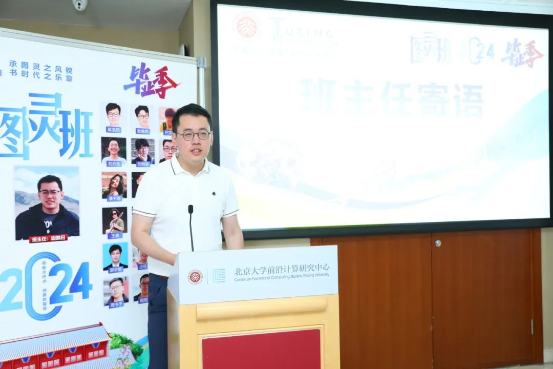 2020级图灵班班主任边凯归老师向同学们送上了亲切的毕业祝福。他希望同学们无论是选择保研、出国还是就业创业,都能够多与父母沟通交流。他鼓励同学们抓住 AI 时代的机遇,以创新为翅膀,取得更大的成就。同时,他也希望同学们毕业后能够常回学校看看,计算机学院的大楼还等着同学们添(juan)砖(qian)加(chong)瓦(jian)。