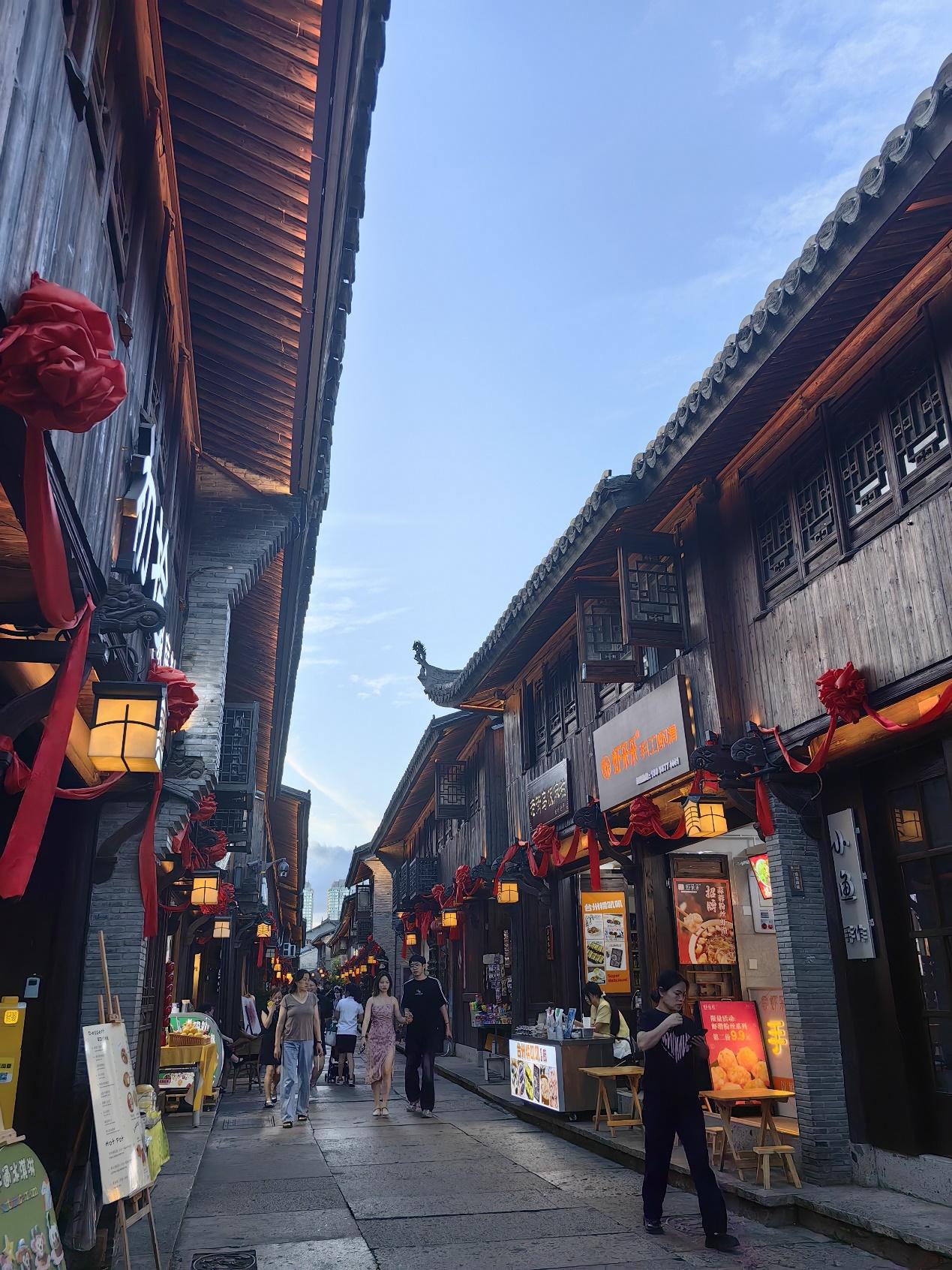 傍晚,实践团前往坐落于台州市路桥区的著名历史文化保护街区十里长街。同学们一同游览十里长街,不仅感受到古街的历史韵味,还亲身体验了酿酒、拓印、掐丝、漆扇等非遗手工艺,了解到当地灰雕,香等特色非遗文化。在古韵的街道上,漫步在五彩油纸伞下,感受着古街的繁华与历史。此外,现场还有乐队演出,为活动增添了更多活力。十里长街是浙江省的历史文化保护街区,它不仅是一个商业繁荣的地方,更是文化底蕴深厚的地方,这是对传统手工艺的一种展示和传承,也为同学们提供了一个深入了解台州文化和历史的机会,同学们在这里找到了属于自己的独特文化体验和乐趣。