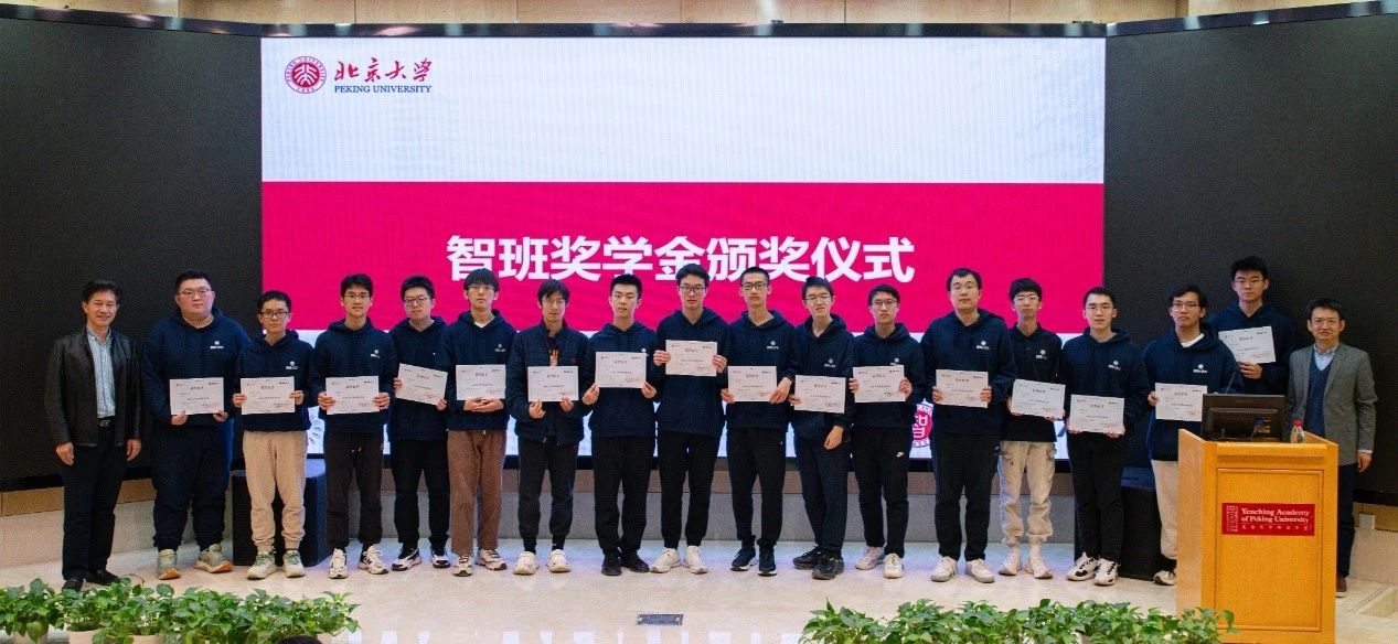 随后,侯士敏与陈宝权为2023-2024学年智班奖学金获奖同学颁发奖学金,并合影留念。