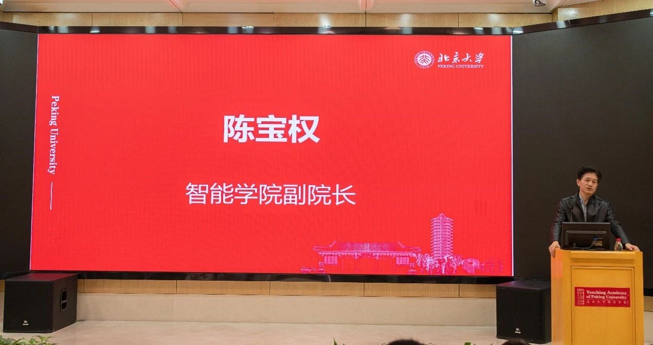 朱松纯教授首先为本次大会作开场致辞。他回顾了北大智能学科的建立历程,向各位参与其中的老师们表达了感谢,并指出北大智能学科的建立,是对社会厚望、国家需求与国际局势的回应,而对智班同学的培养,是建立在系统、科学的培养方案与可供有组织科研的良好平台上的。他向获得奖学金的同学们表示祝贺,希望全体智班同学都能在日后的科研、学习中,砥砺前行,努力成长为科班出身的人工智能专家。