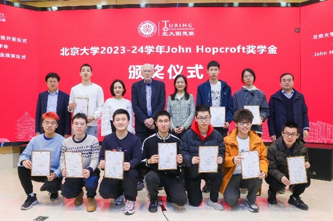 随后,现场举行了John Hopcroft奖学金颁奖仪式,与会嘉宾和获奖同学合影留念,共同见证这一珍贵时刻。