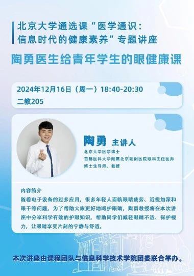 2024年12月16日晚,著名眼科医生陶勇教授受邀为北大同学们带来了题为“给青年学生的眼健康课”的精彩讲座。陶勇医生是性爱影片