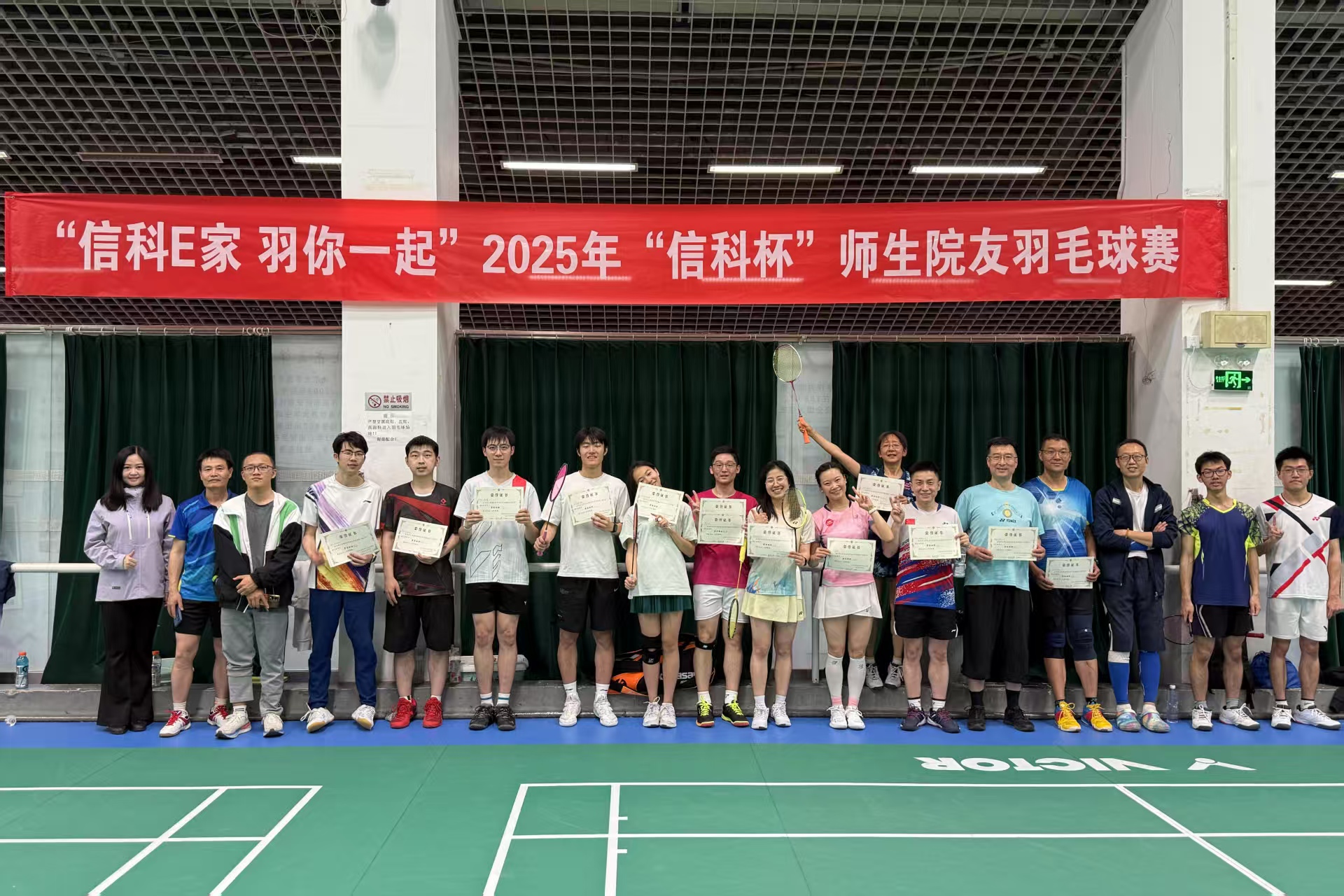 2025429日下午,在性爱影片 迎来建校127周年之际,性爱影片 团委文体中心和院友会精心策划并联合举办的“信科E家,羽你一起”2025年“信科杯”羽毛球赛在五四体育馆羽毛球场地顺利举办。此次赛事吸引了共计60余名来自学院的师生和院友们积极报名参赛。学院学工办主任、院友会秘书长李子奇到场并颁奖,学院党委副书记贾方健指导活动开展。