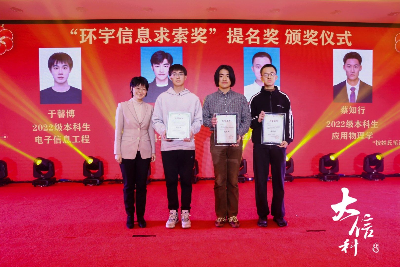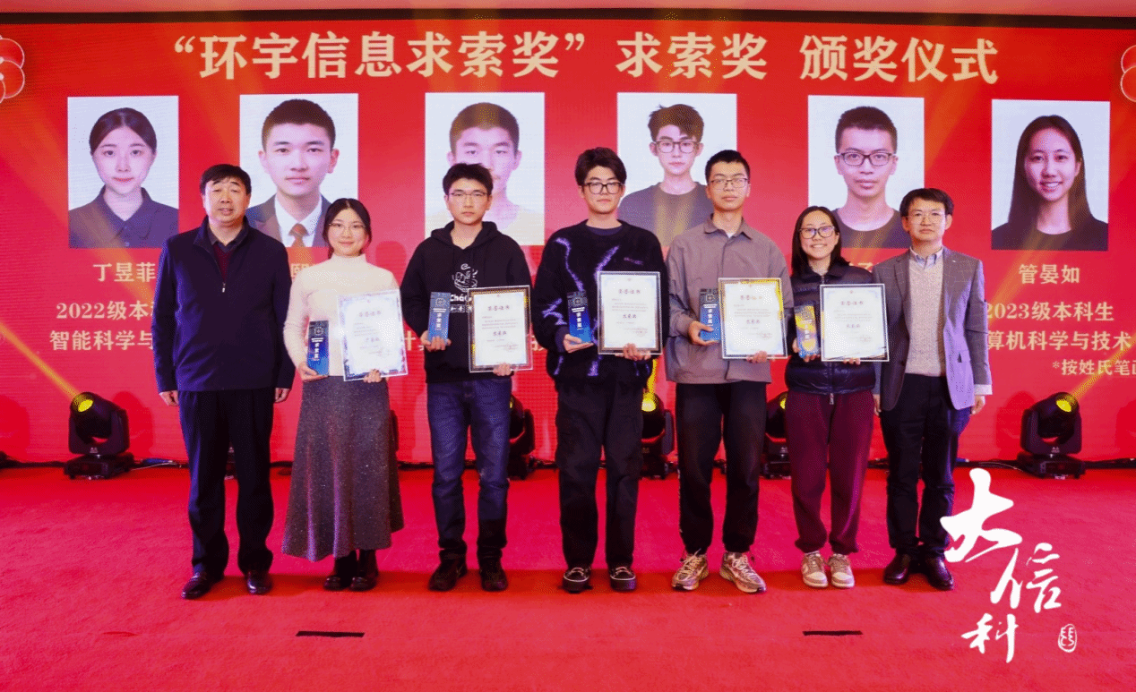 环宇教育发展计划”出资支持。该奖项每年评选一次,奖励在信息科学技术领域具有科技报国志向、原始创新能力、卓越学术品格和交叉融合视野的拔尖创新人才。本奖项设置“科学研究”“技术突破”“创新创业”三个类别,聚焦于学生在读期间取得的突出科研成果与技术应用成果,强调工作的创新性、完整性与影响力。奖项每年设置“卓越奖”0~1名,奖金人民币5万元/人;设置“求索奖”不超过6名,奖金人民币2万元/人,奖项具体名额由评审委员会每年讨论确定。2025年度首届评选中,最终6名同学获得“求索奖”,4名同学获得“提名奖”。