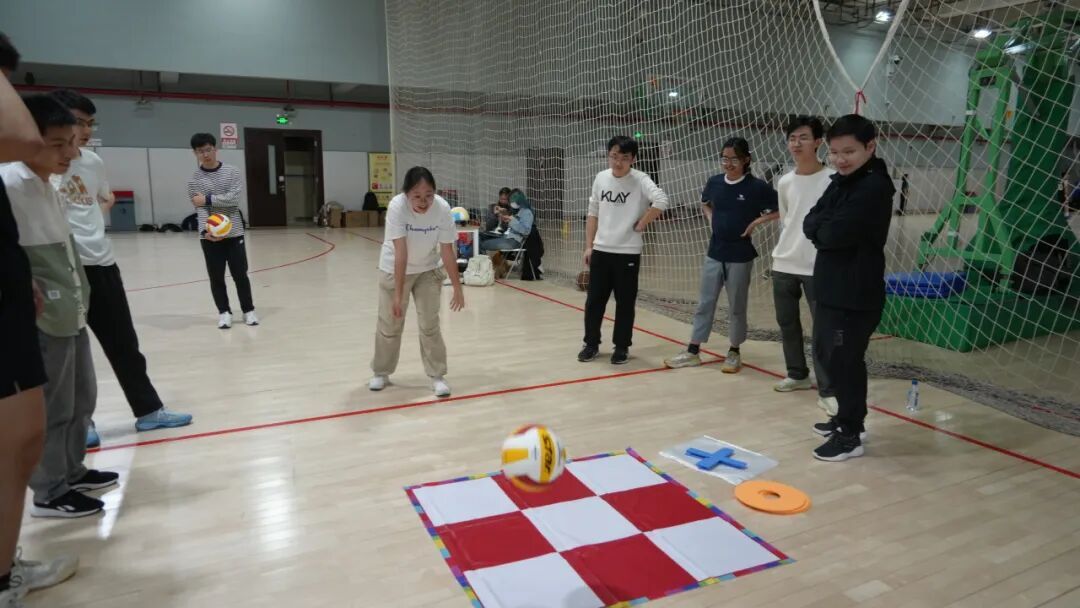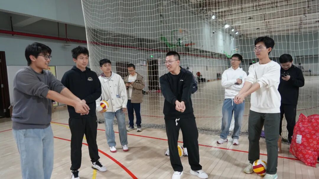 赛场上,身影跃动,热情满溢。个人垫球环节中,选手们凝神专注,指尖稳稳控球,连续垫击的身影成为赛场最动人的风景,每一次突破自我的连击都赢得阵阵喝彩;垫球九宫格对抗里,双人相互竞争,瞄准落点、精准垫击,率先连线的瞬间点燃欢乐氛围,策略与技巧的碰撞让趣味拉满;传球入框环节,选手们沉着发力、瞄准入框,细腻的传球技术尽显排球基本功,每一次精准命中都引发全场欢呼;3V3 团体友谊赛更是将氛围推向高潮,队员们默契配合、攻防有序,传球、垫球、扣杀一气呵成,团队协作的力量在赛场绽放,也让三个学院的青年学子之间的情谊在并肩作战中不断升温。