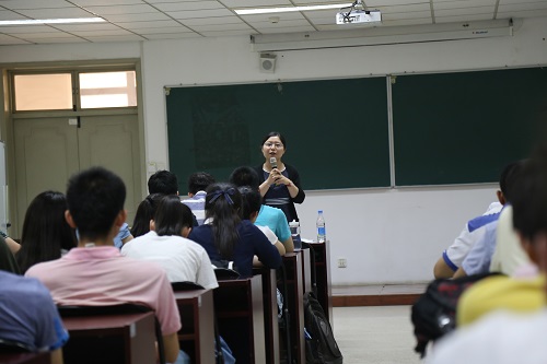 分组模拟面试结束后,全体学员集中到理科一号楼1126室,听取吕媛老师和来自BeBeyond职业规划公司的培训师谢劲波先生对模拟面试的点评和总结。吕媛老师首先系统地分析了各类面试培训的特点,简单介绍了公司招聘面试的一般流程,并结合学员们在面试中的具体表现,详细分析了无领导小组面试中的角色设定和领导者、记录者等各个角色在团队中应该发挥的作用。吕媛老师特别强调,影响面试结果的是同学们的自身实力和面试技巧,技巧的习得固然重要,但同学们通过学习、实践积淀形成的实力才是决定性的。随后,谢劲波先生结合自己留美十年的经历,通过国内外环境的对比以及自己亲身经历的事例,为同学们仔细分析了团队合作的重要性。