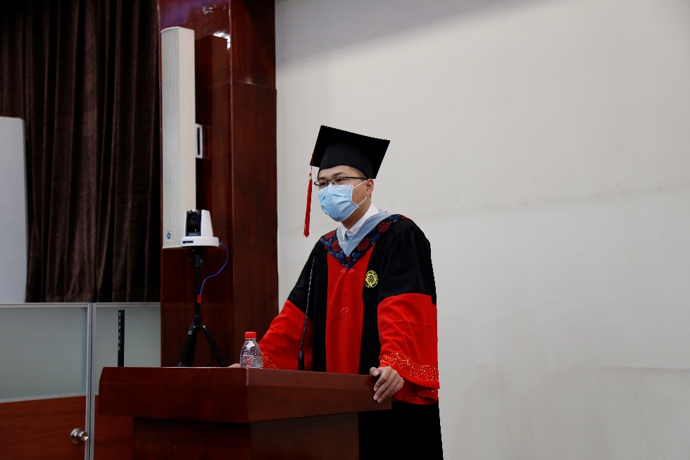 院长高文教授发表讲话。他首先对毕业生圆满完成学业、顺利毕业表示祝贺,对家长及社会各界友人配合学院育人工作表示感谢,也对信科老师为本届毕业生成长进步付出的努力表达敬意。他将这个特殊的毕业典礼和毕业季看作是本届毕业生们在特殊历史时期的一门实践课,称赞同学们是美好家园的守护者、探索路上的攻坚者、课题研究的先行者,为防疫抗疫贡献了信科智慧、信科力量。在送别的时刻,高文院长对毕业生提出了三点寄语:一是希望同学们坚持终身学习,保持好奇心,与时代同步前进;二是要勇于担当,荣辱不惊,一步一个脚印踏踏实实做事;三是要目标远大,砥砺奋进,永远拥有积极励志的初心,拥有乐观向上的人生姿态。最后,高文院长指出:理想决定成就的高度,胸怀决定成就的广度,人格决定成就的深度。他勉励毕业生们带着北大赋予的精神和品格,带着信科教给的智慧和能力,在更高的层面、更宽广的天地取得更大的进步。