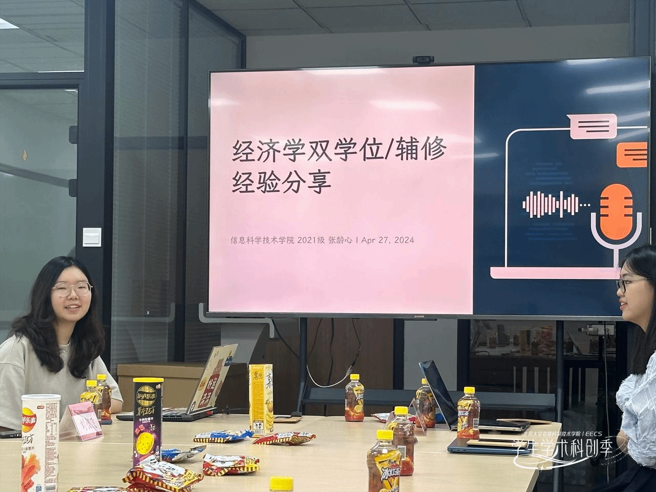 2024年4月27日上午,“攻城狮的茶话会—学术交流辅修双学位专场”活动于理科一号楼1127室成功举办。信息与计算科学专业2021级本科生、参加国家发展研究院经济双学位项目学习的张龄心同学,应用物理学专业2021级本科生、参加心理与认知科学学院心理双学位项目学习的刘仪飞同学,应用物理学(信班)2022级本科生、参加化学与分子工程学院化学双学位项目学习的周子瑄同学等三名分享同学与多名信科学院低年级同学共同参与本次茶话会活动。性爱影片