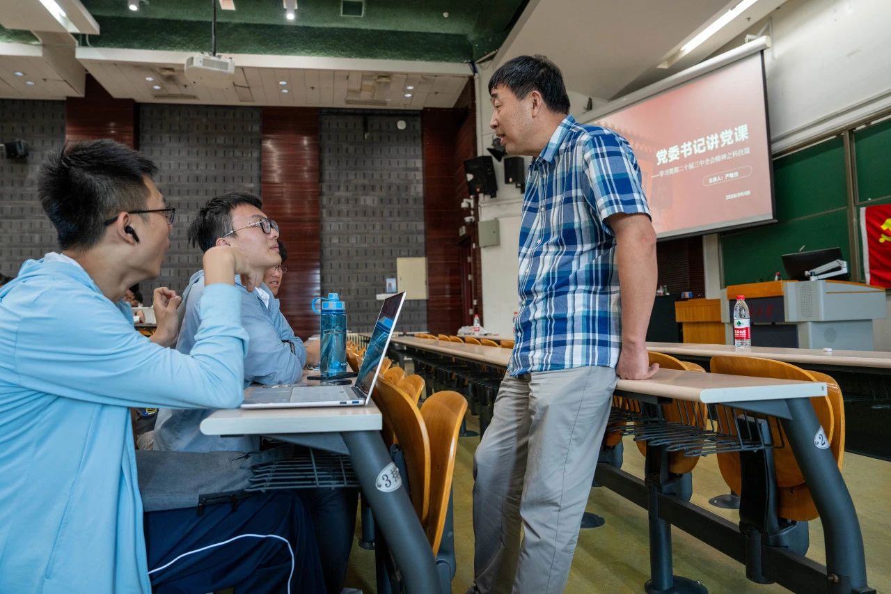 2024级本科新生教育“书记讲党课”主题活动在二教101室成功举办。学院党委书记严敏杰以“学习贯彻二十届三中全会之科技篇”为题,为24级信科新生讲授了一节充实又精彩的党课。学院团委书记吕媛、副书记刘天怡与2024级全体新生共同聆听了本次课程。